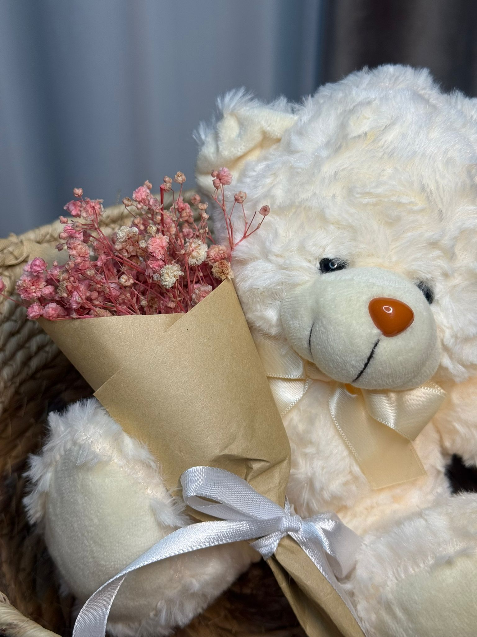 Buchetelul cu floricele este alegerea perfectă pentru 1 sau 8 martie . Este un buchet simplu dar elegant,delicat si finut care poate fi pastrat ca si decor mult timp ,datorita florilor uscate .