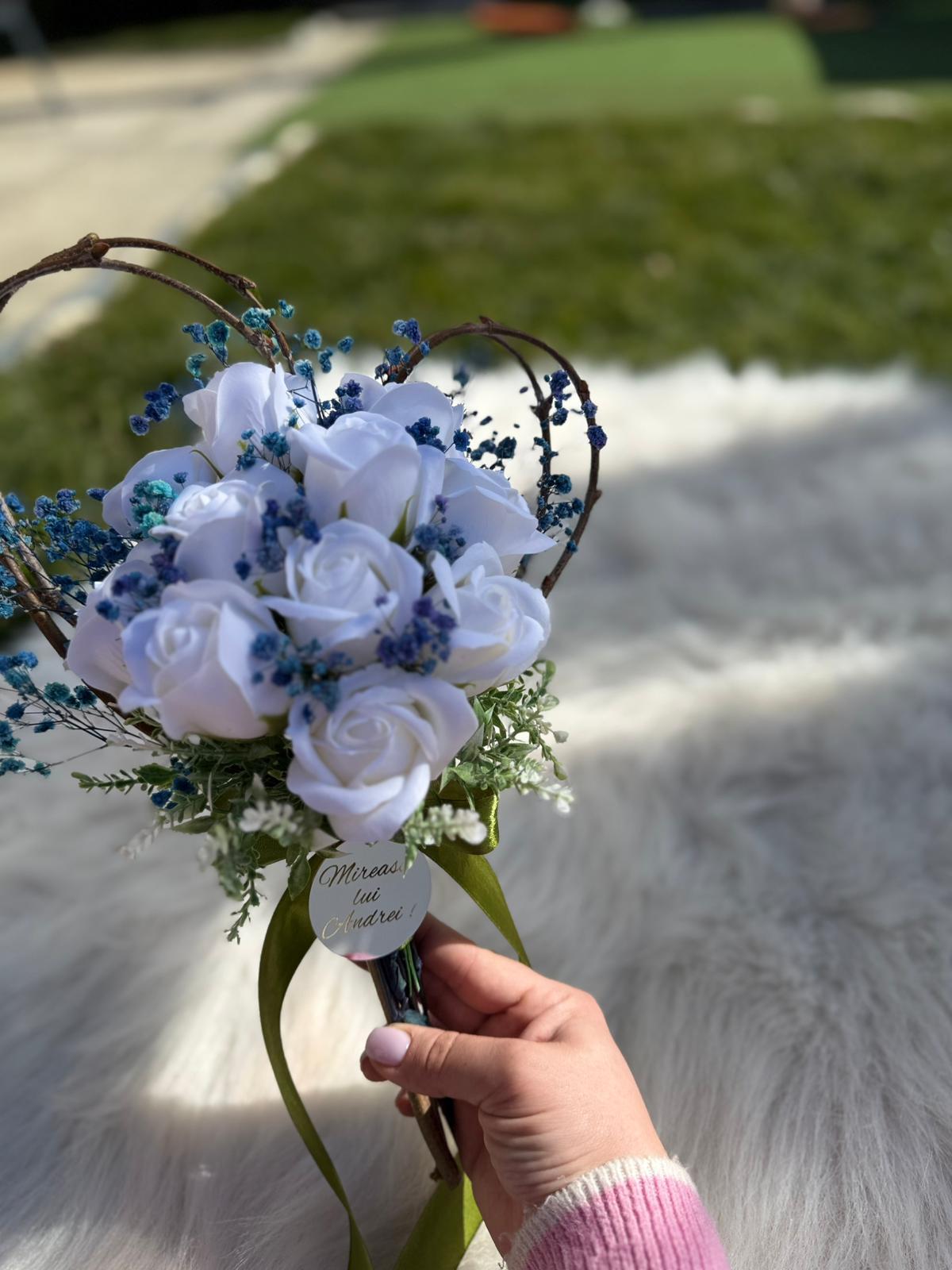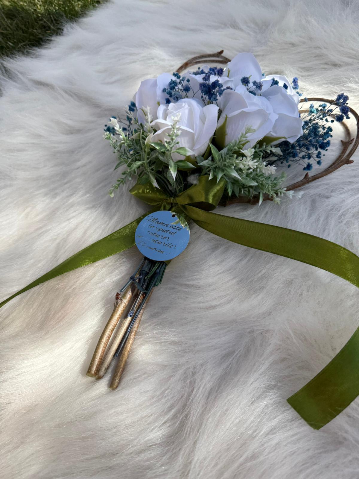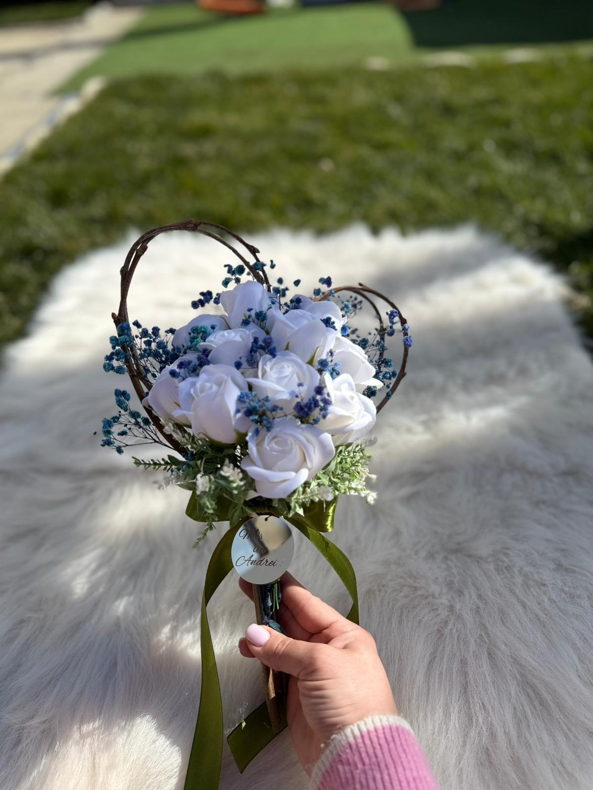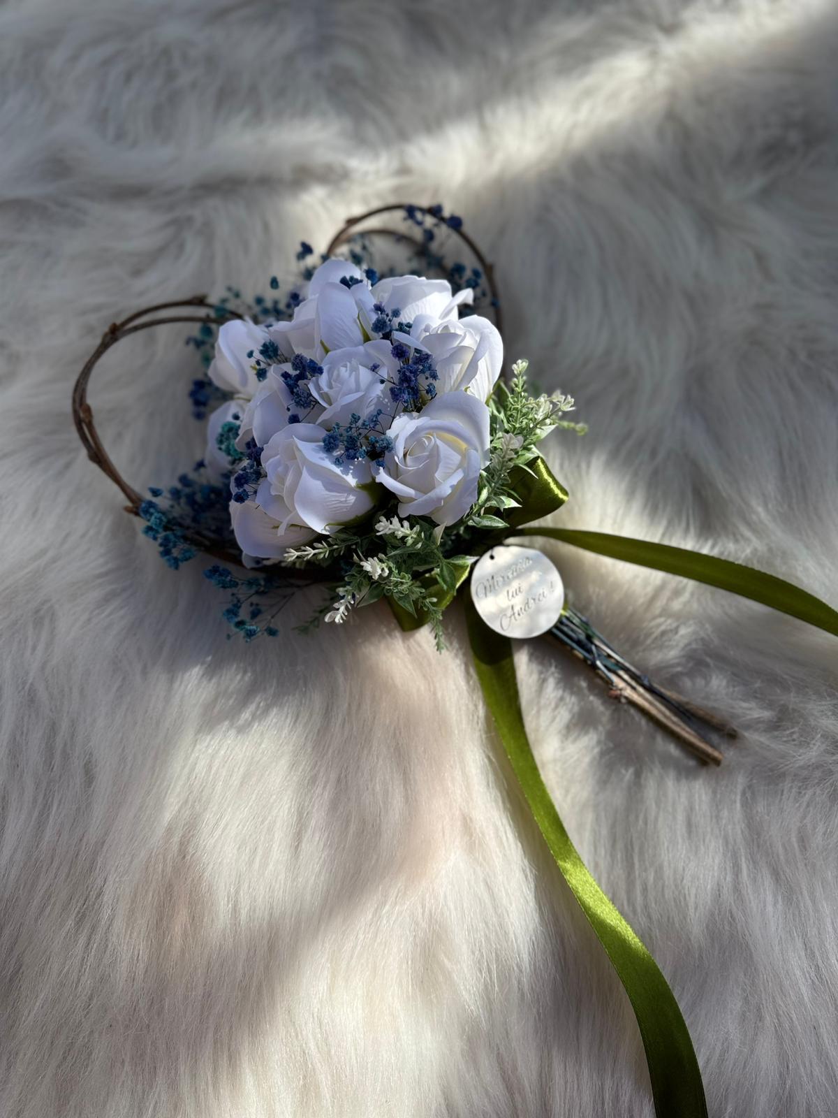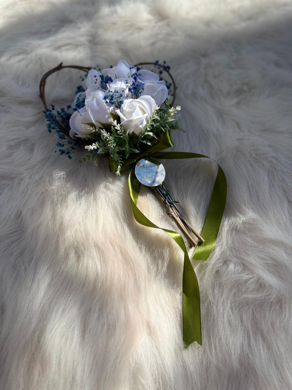 Alte specificații : Buchetul poate avea o dimensiune mai mare la cerere, toate aceste aspecte le puteti comunica la confirmarea telefonica a comenzii. Durata de realizare este intre 2 si 5 zile insa in perioadele algomerate poate dura pana la doua saptamani .