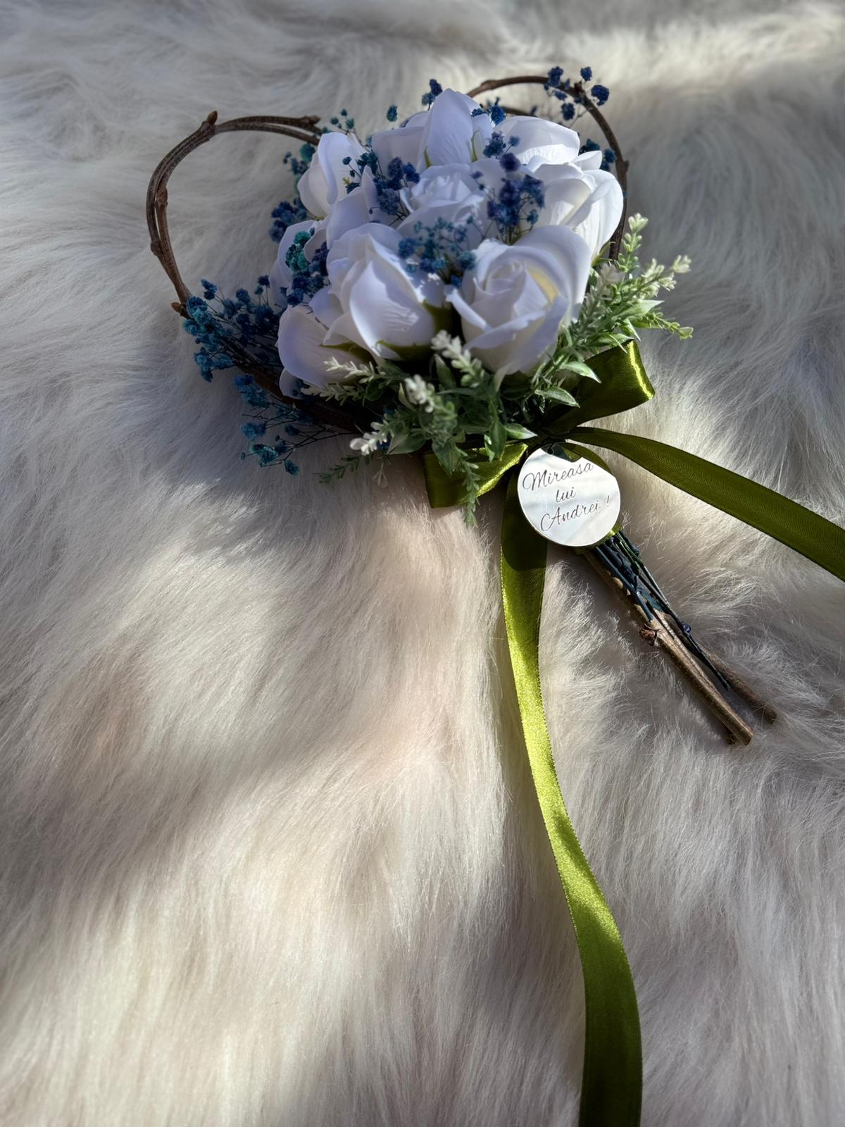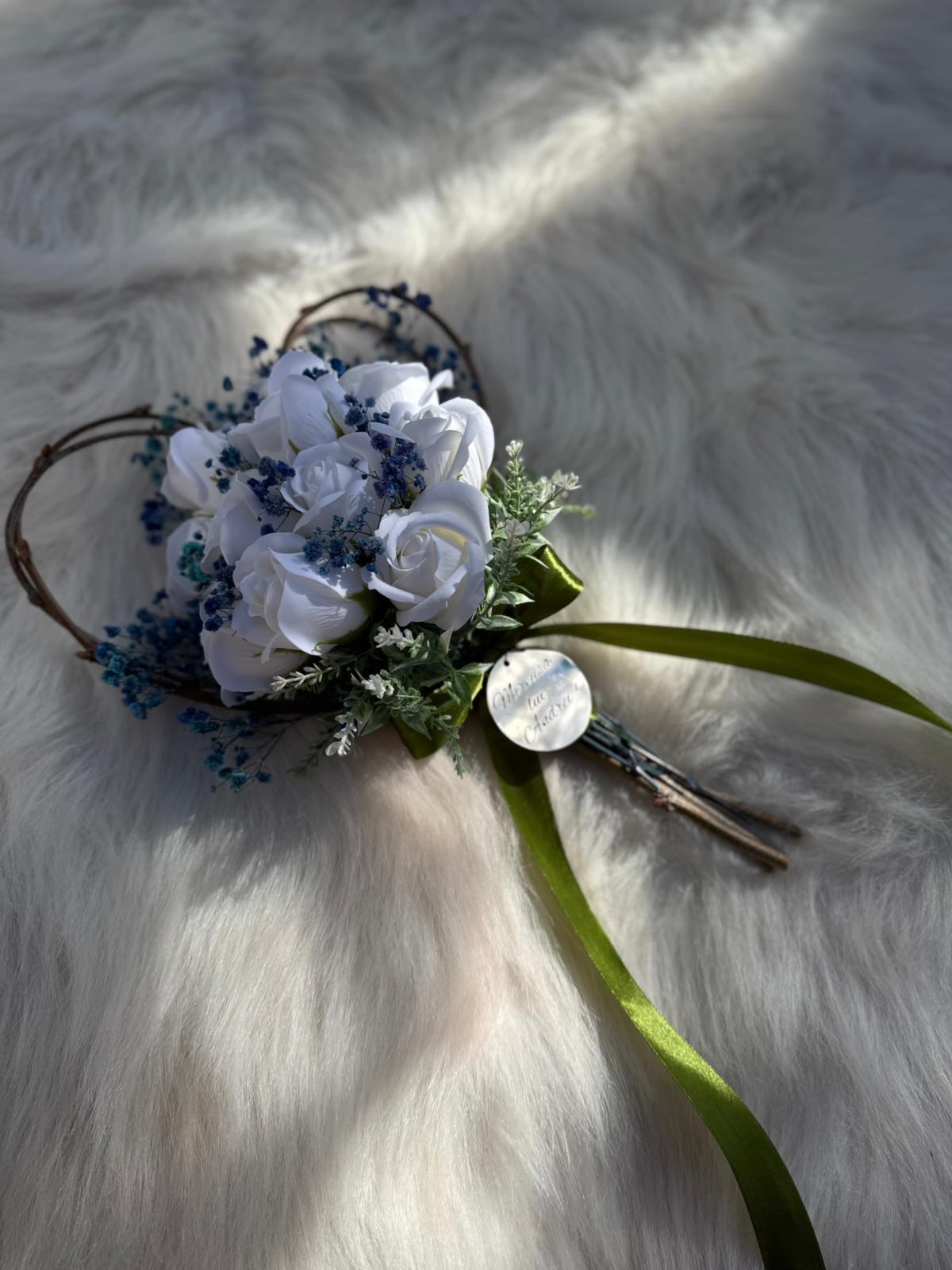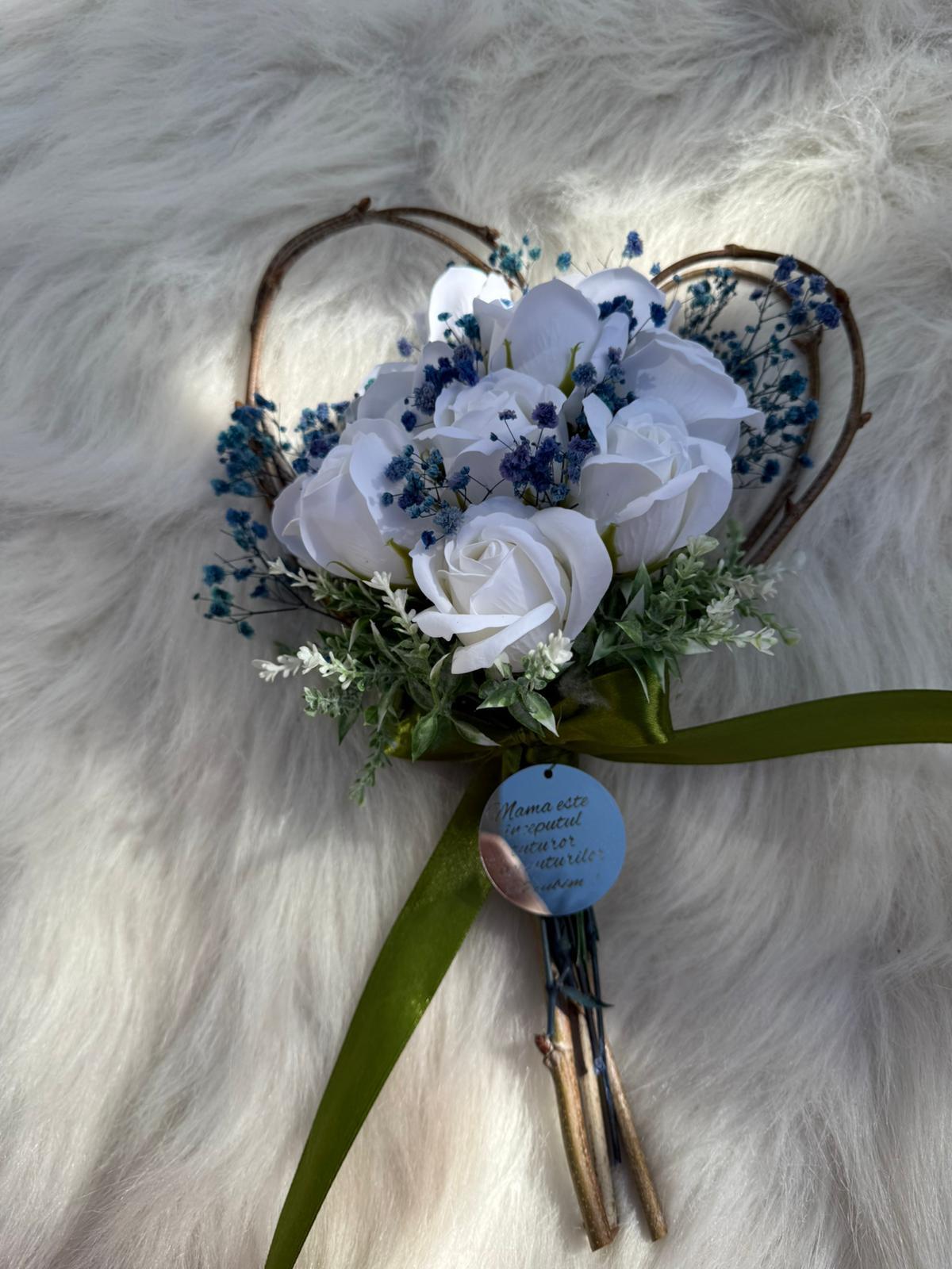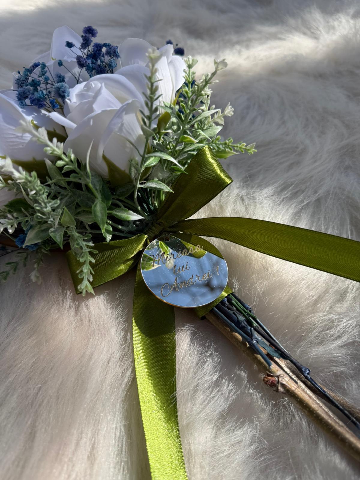 Alte specificații : Buchetul poate avea o dimensiune mai mare la cerere, toate aceste aspecte le puteti comunica la confirmarea telefonica a comenzii. Durata de realizare este intre 2 si 5 zile insa in perioadele algomerate poate dura pana la doua saptamani .