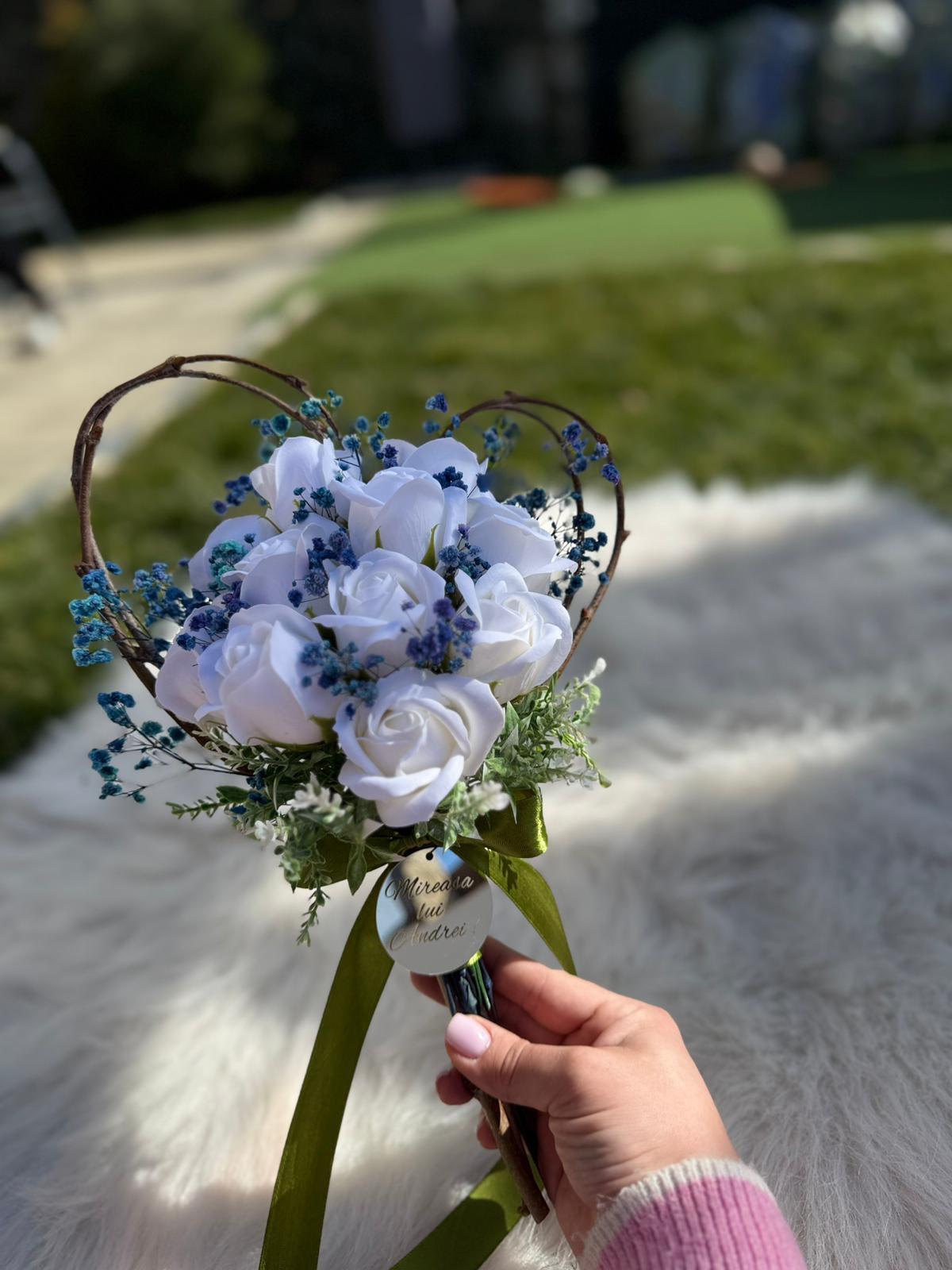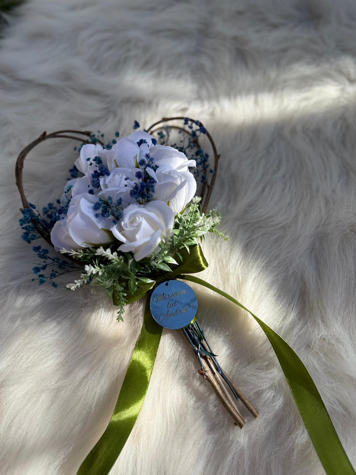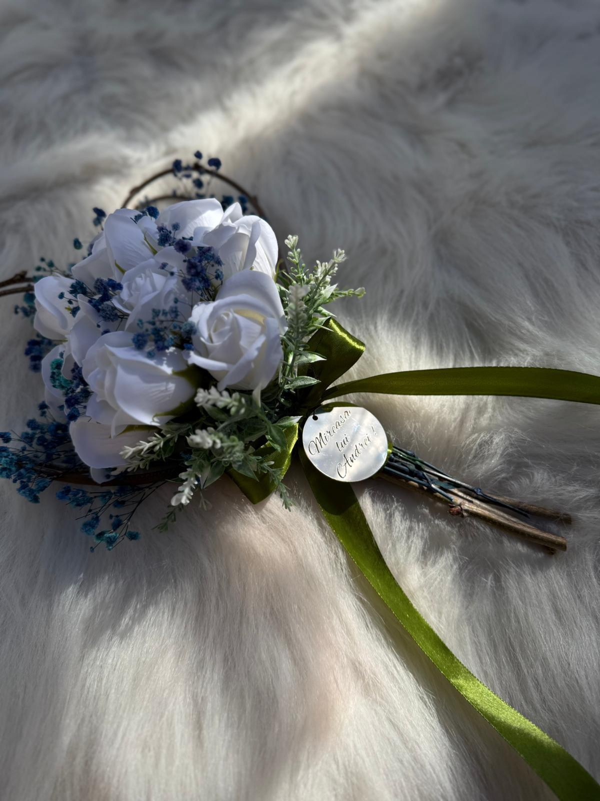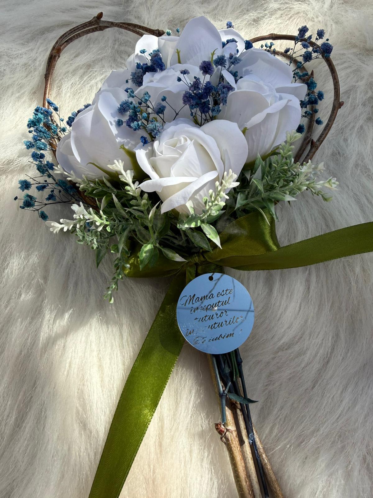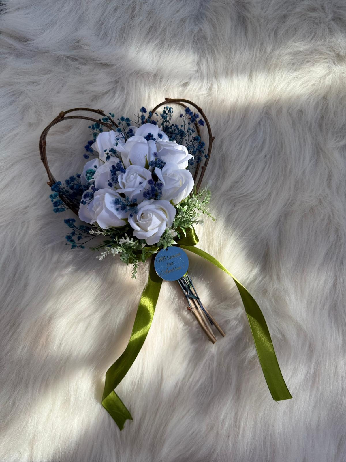 Alte specificații : Buchetul poate avea o dimensiune mai mare la cerere, toate aceste aspecte le puteti comunica la confirmarea telefonica a comenzii. Durata de realizare este intre 2 si 5 zile insa in perioadele algomerate poate dura pana la doua saptamani .