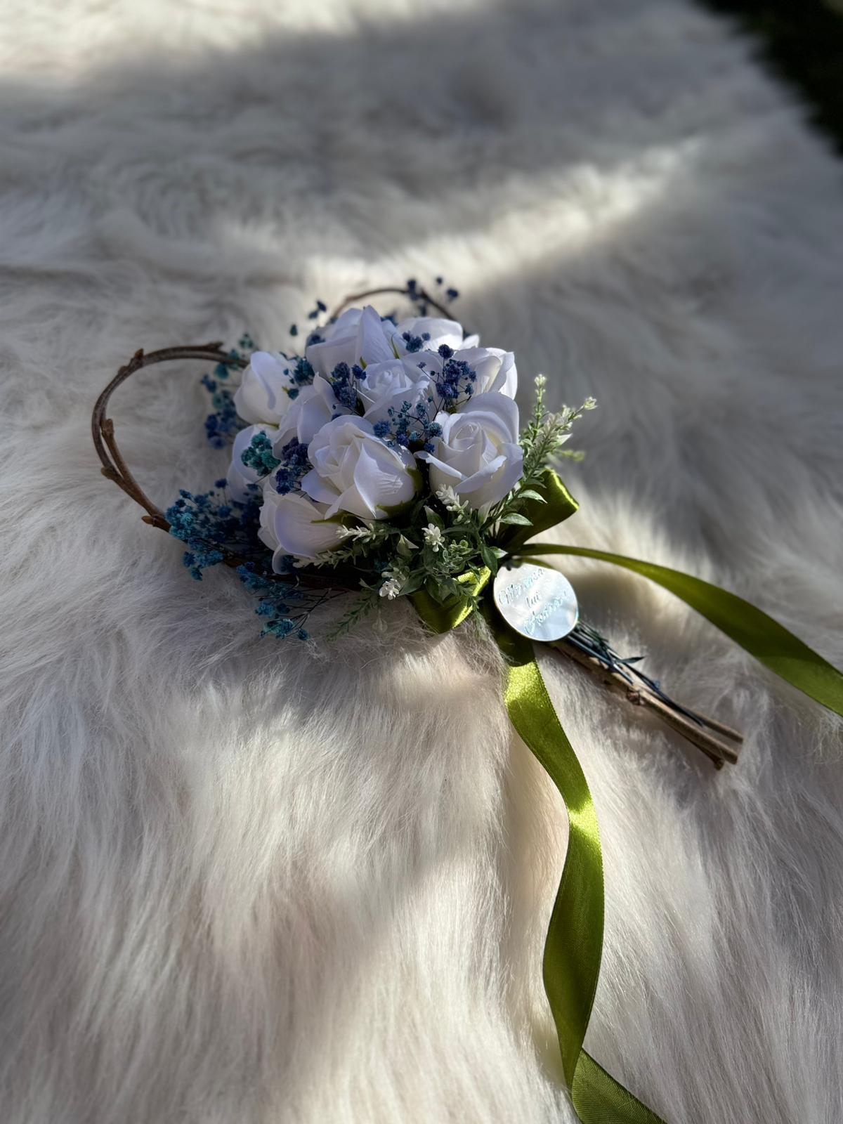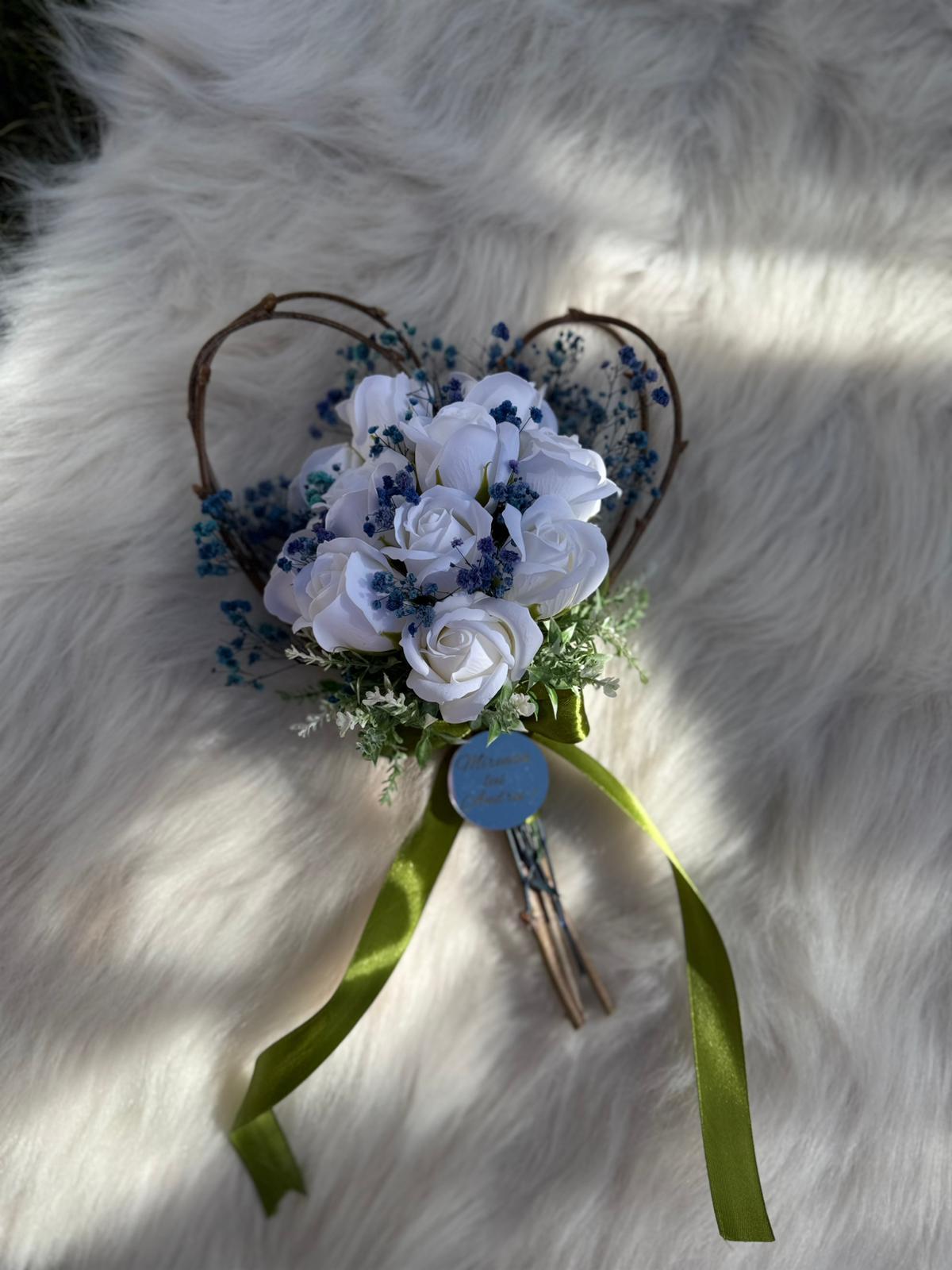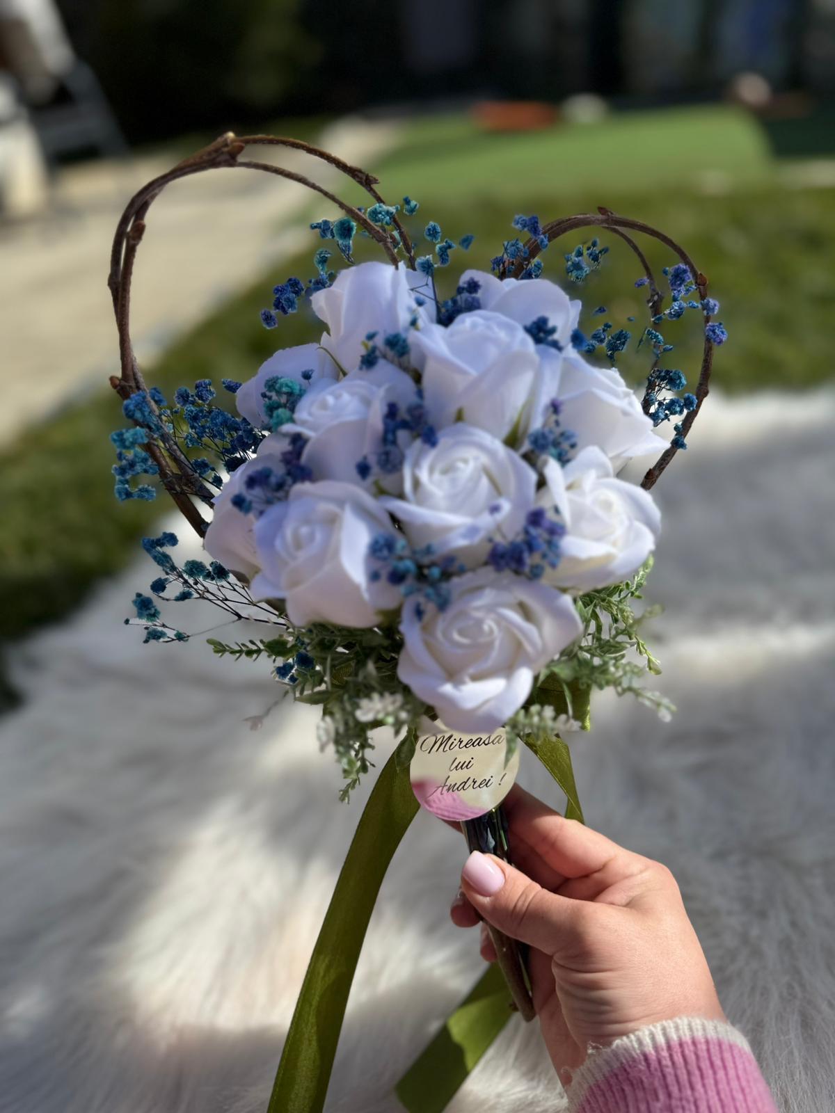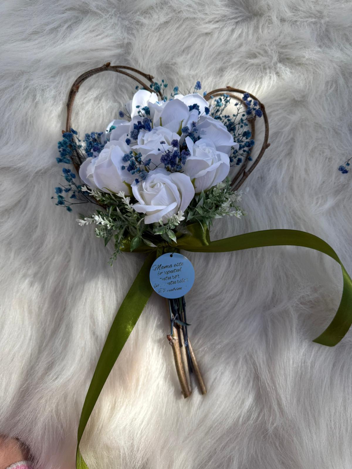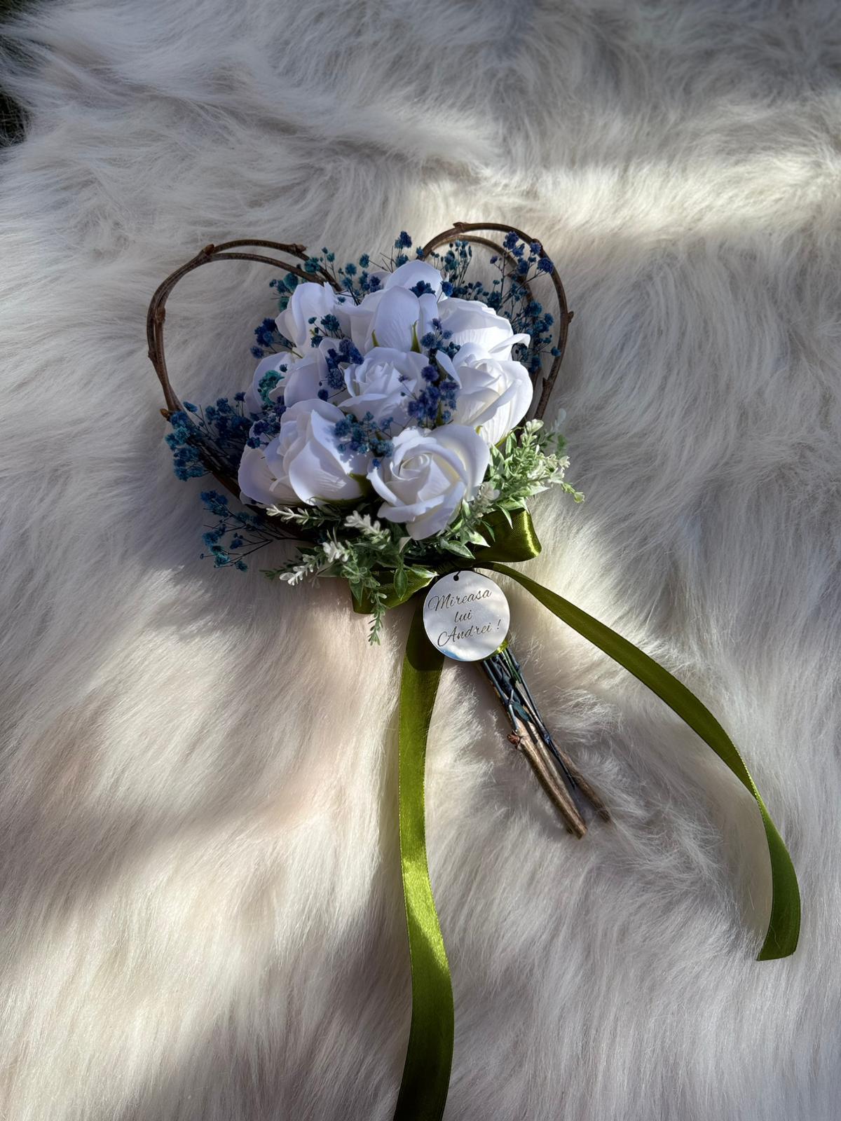 Alte specificații : Buchetul poate avea o dimensiune mai mare la cerere, toate aceste aspecte le puteti comunica la confirmarea telefonica a comenzii. Durata de realizare este intre 2 si 5 zile insa in perioadele algomerate poate dura pana la doua saptamani .