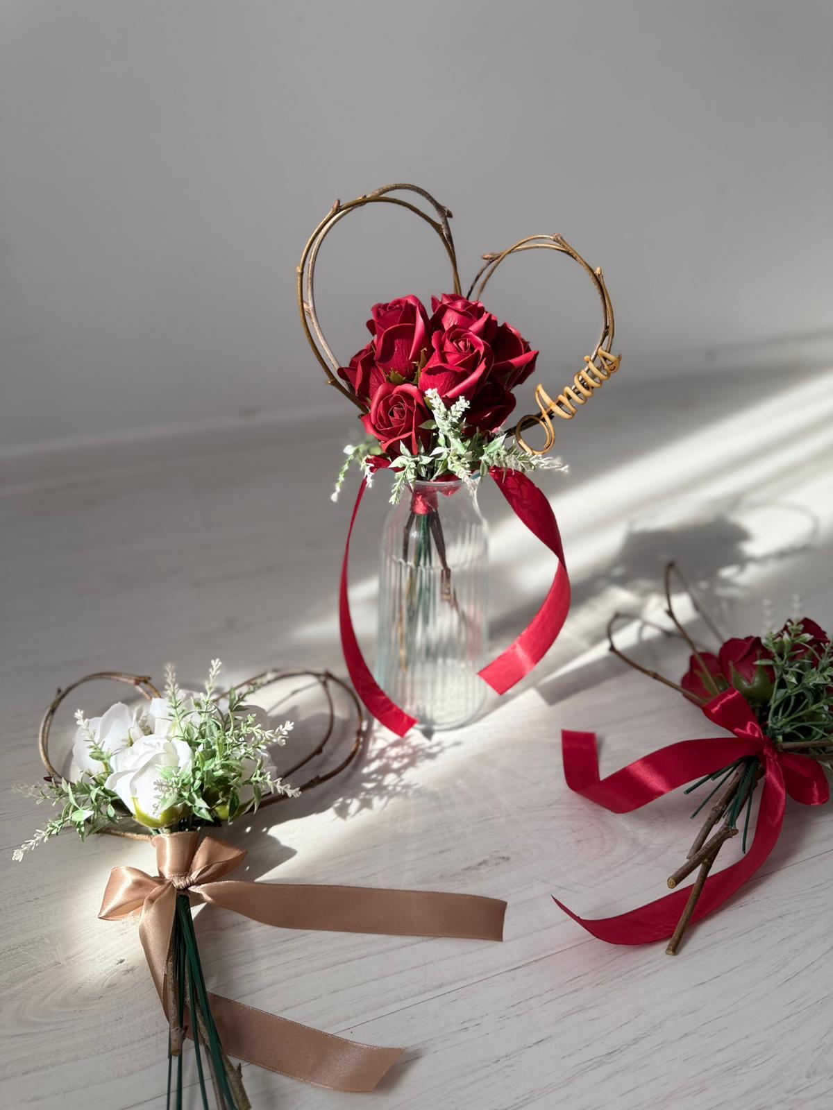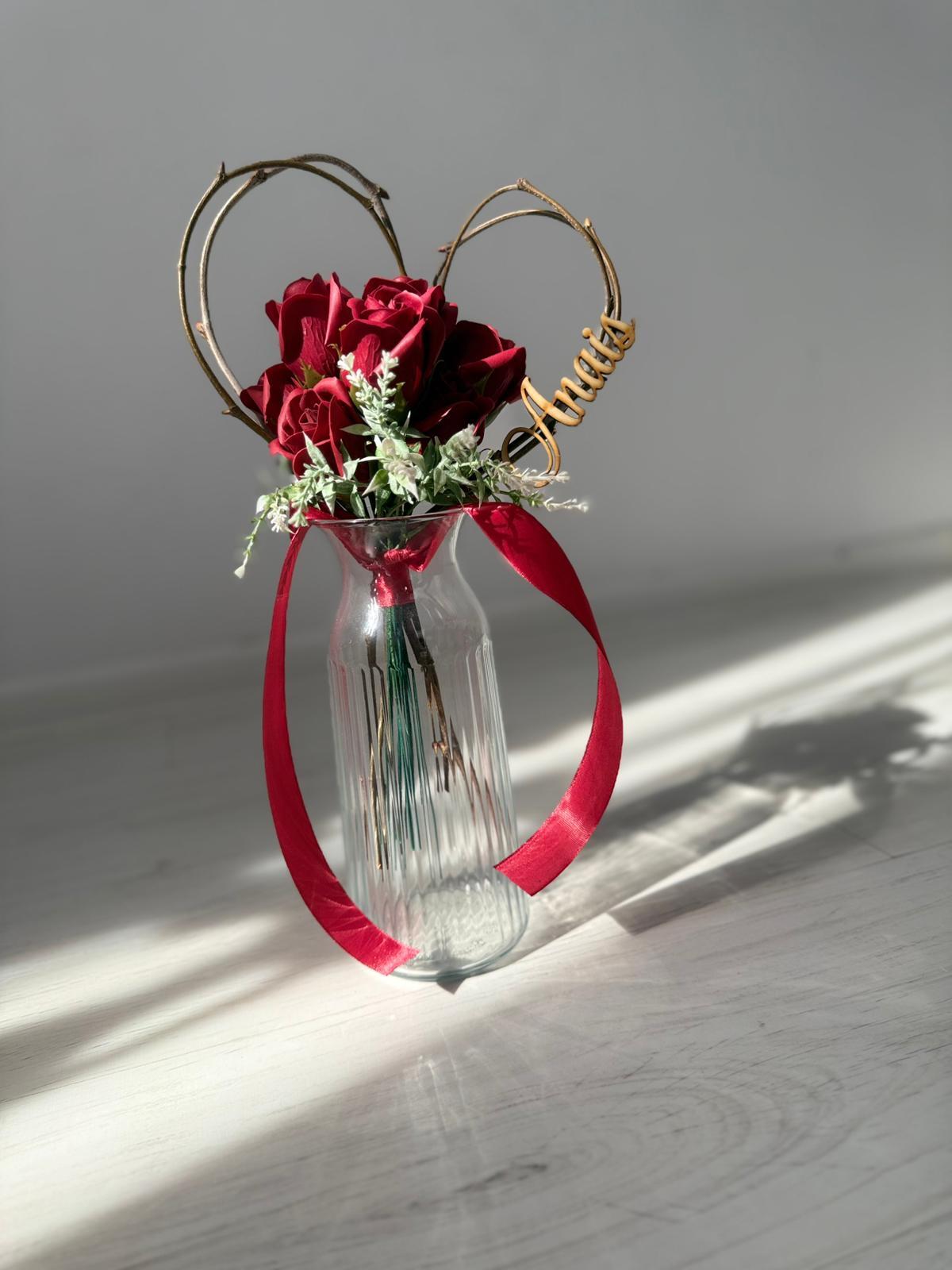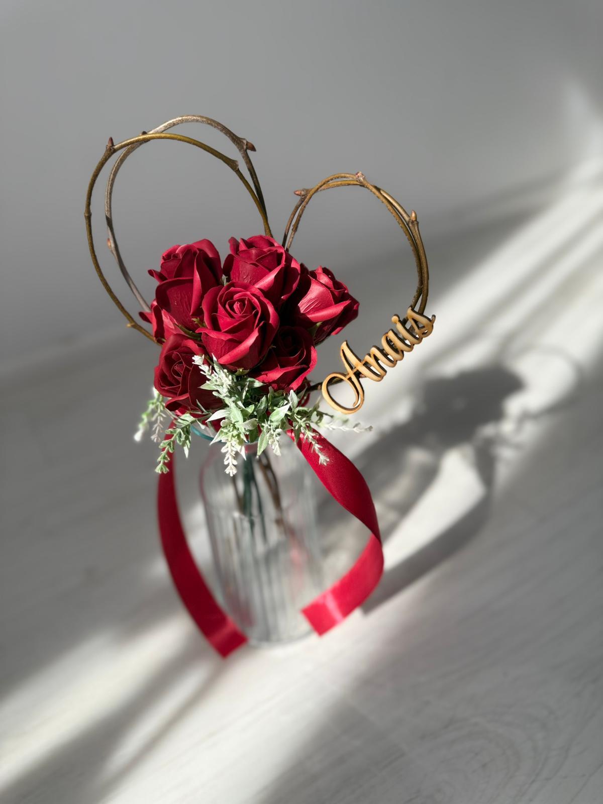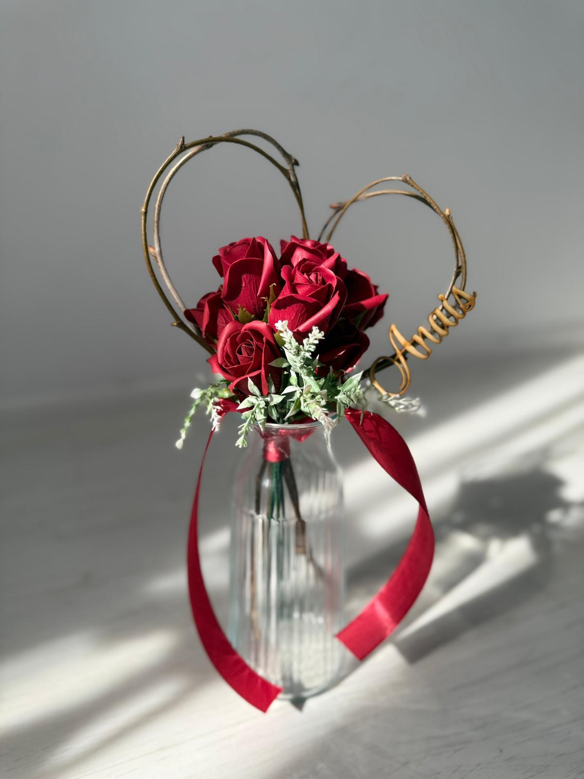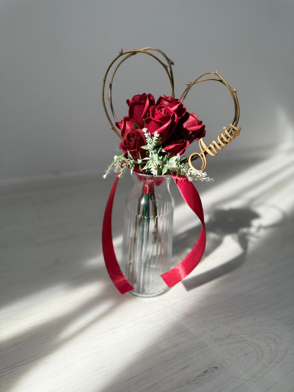 Buchetel inimioara si trandafiri din sapun personalizat cu nume