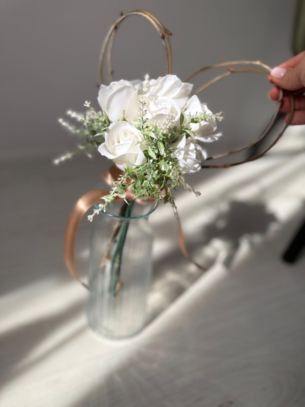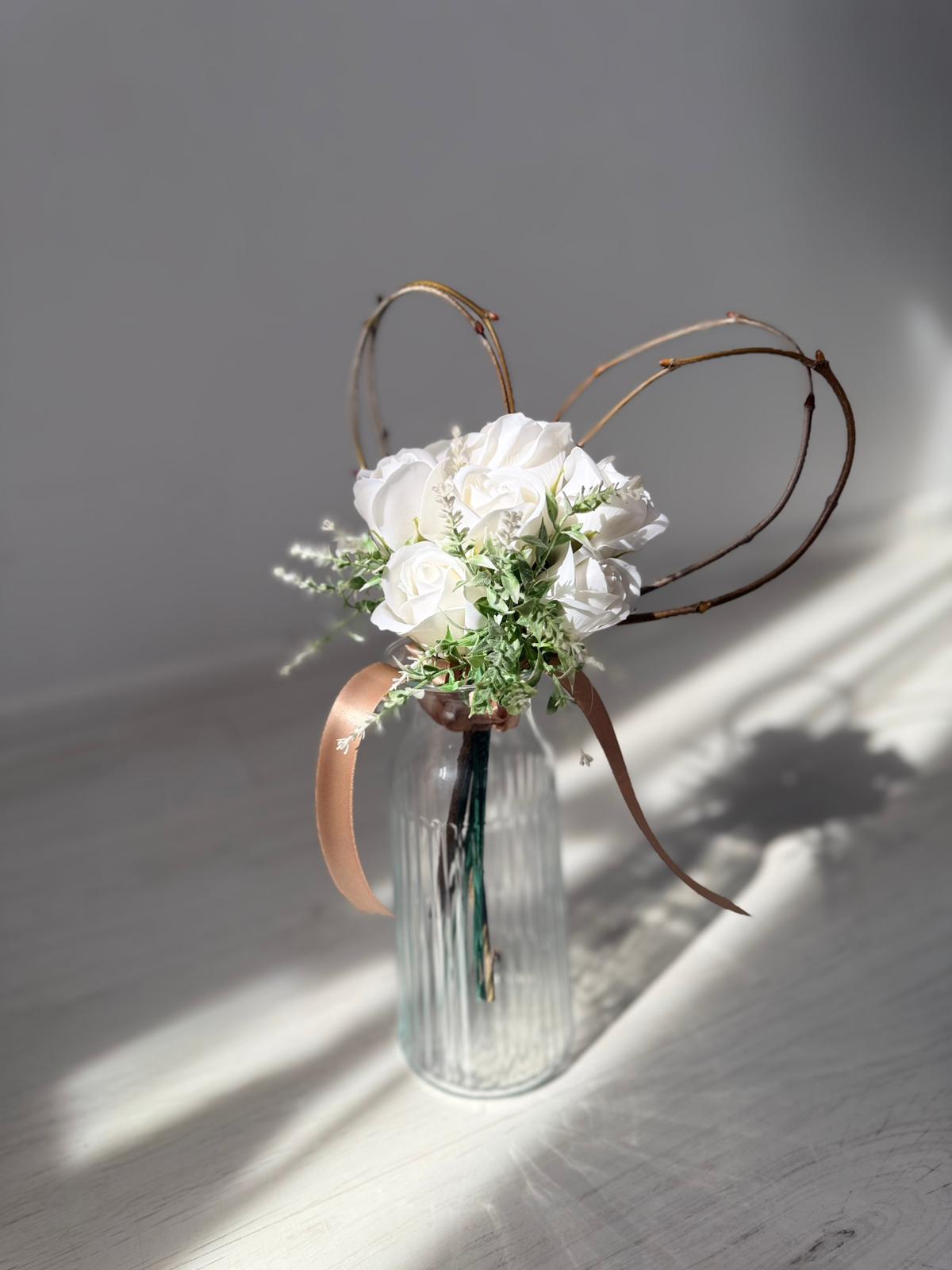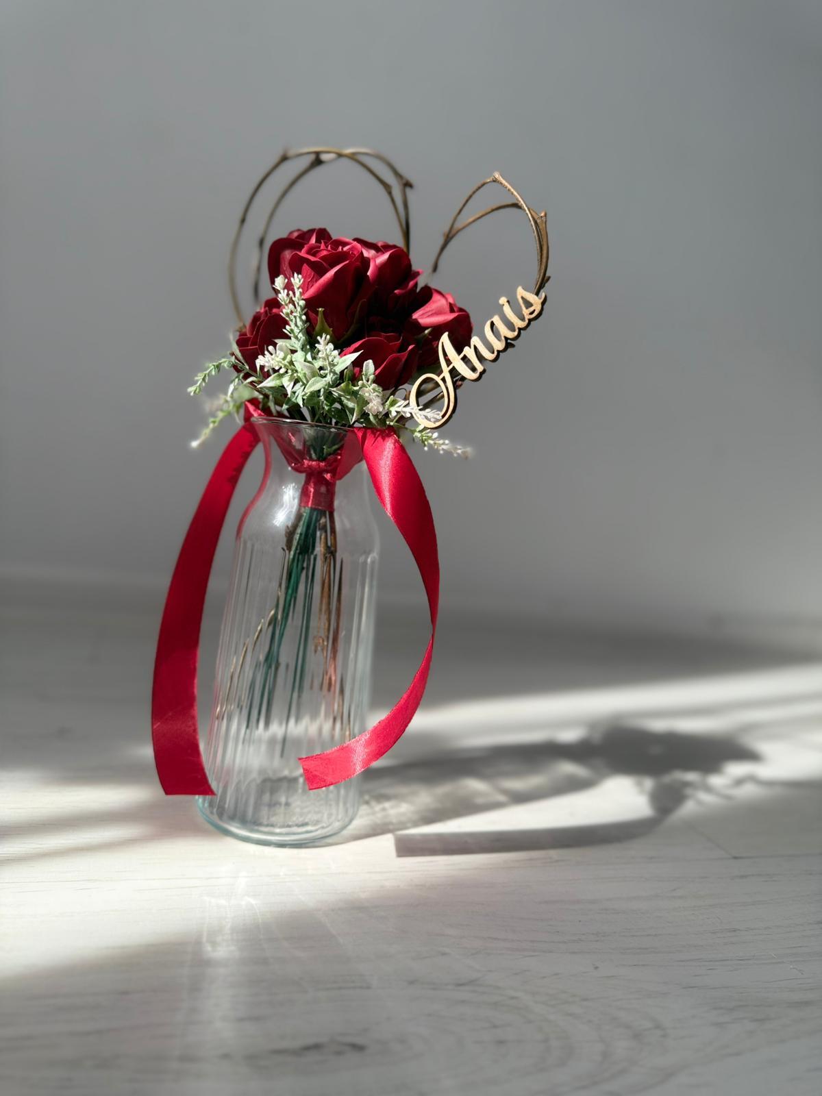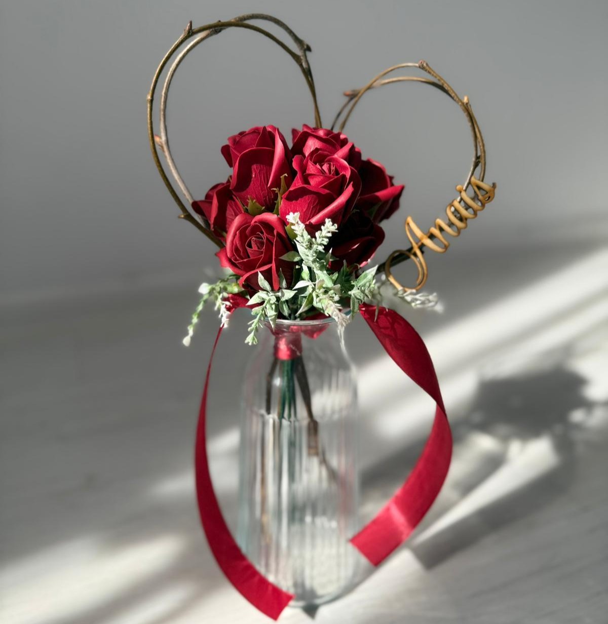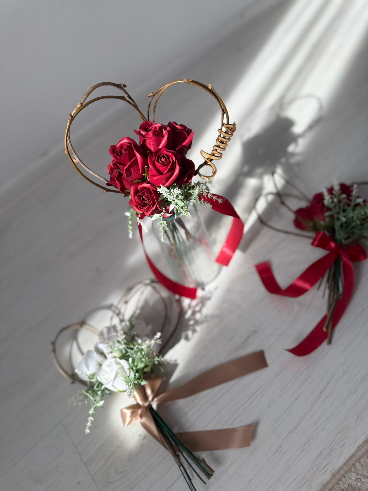 Buchetel inimioara si trandafiri din sapun personalizat cu nume