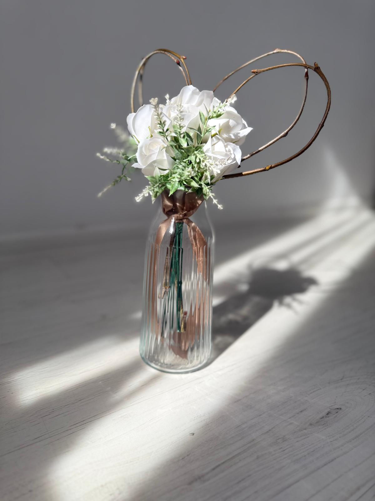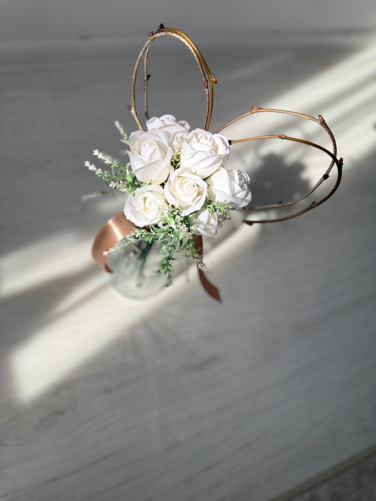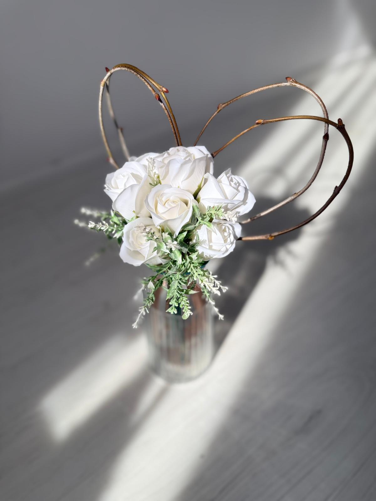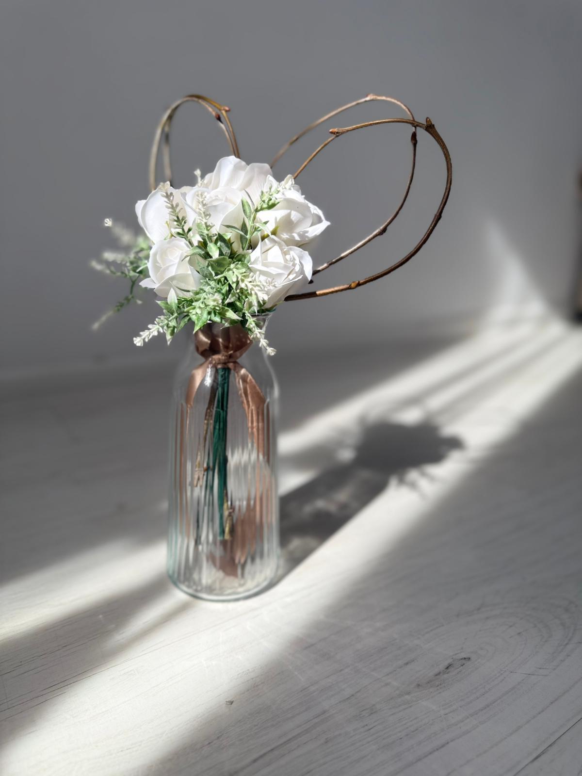 Buchetelul "Inimioară și trandafiri din săpun personalizat cu nume" este un cadou unic și rafinat, special creat pentru a impresiona. Acest aranjament delicat combină frumusețea trandafirilor din săpun, care își păstrează aspectul impecabil în timp, cu o inimioară personalizată ce adaugă o notă personală memorabilă. Este perfect pentru a celebra momente speciale și pentru a oferi un simbol al afecțiunii care durează.Buchetul contine 7 trandafiri din sapun.