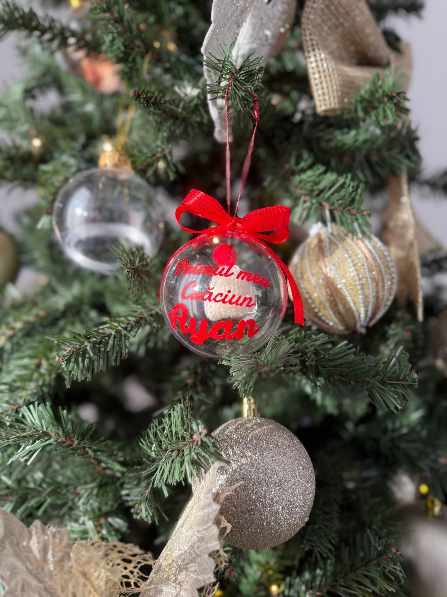 Globul transparent personalizabil este alegerea perfectă pentru a adăuga un strop de originalitate și emoție decorațiunilor tale. Realizat din materiale de calitate, acest glob poate fi personalizat cu nume, mesaje sau designuri speciale, transformându-l într-un cadou unic sau o amintire de neuitat. Ideal pentru orice ocazie, este ușor de integrat în decor și aduce o notă personală fiecărui moment important din viața ta.