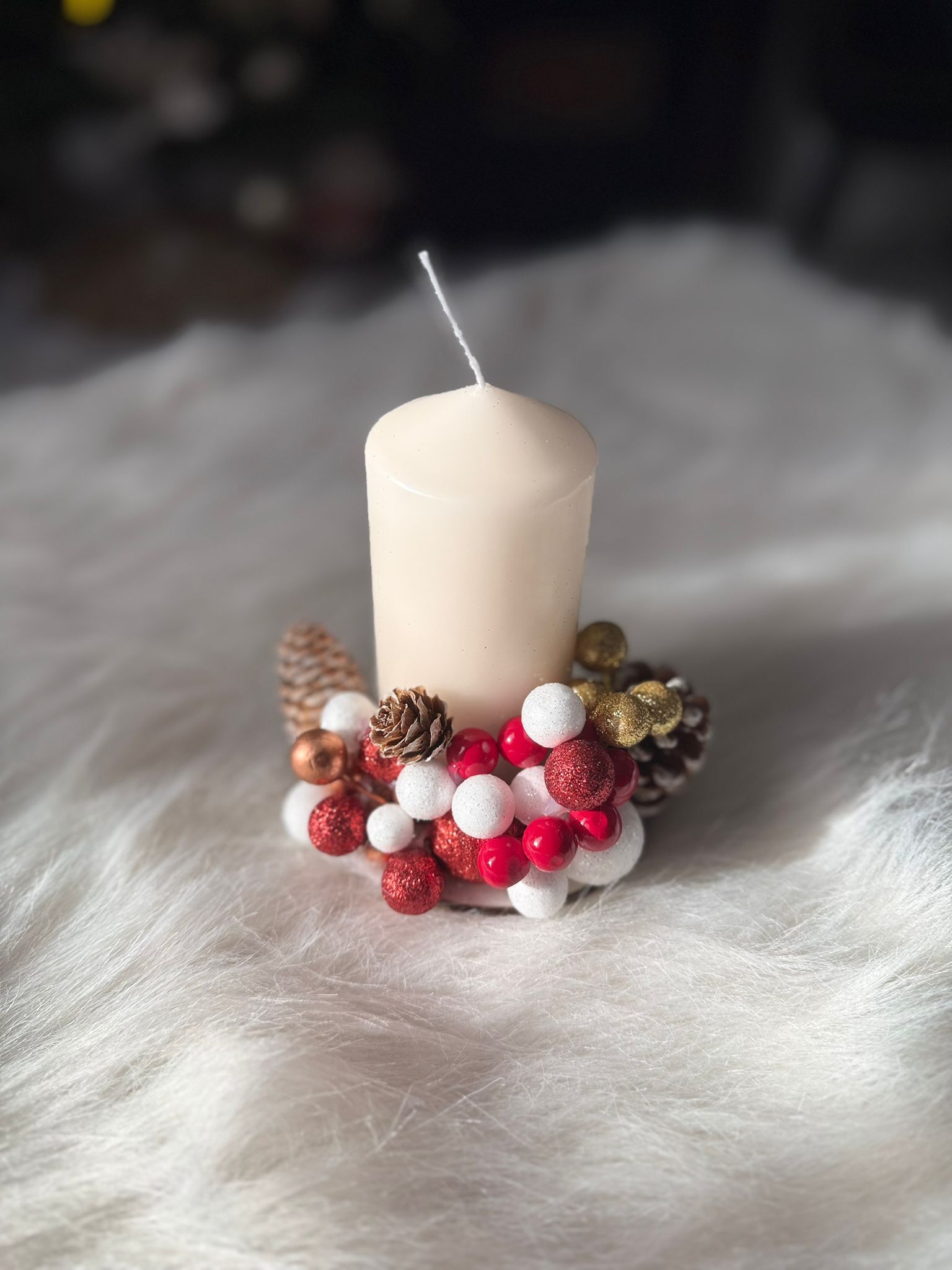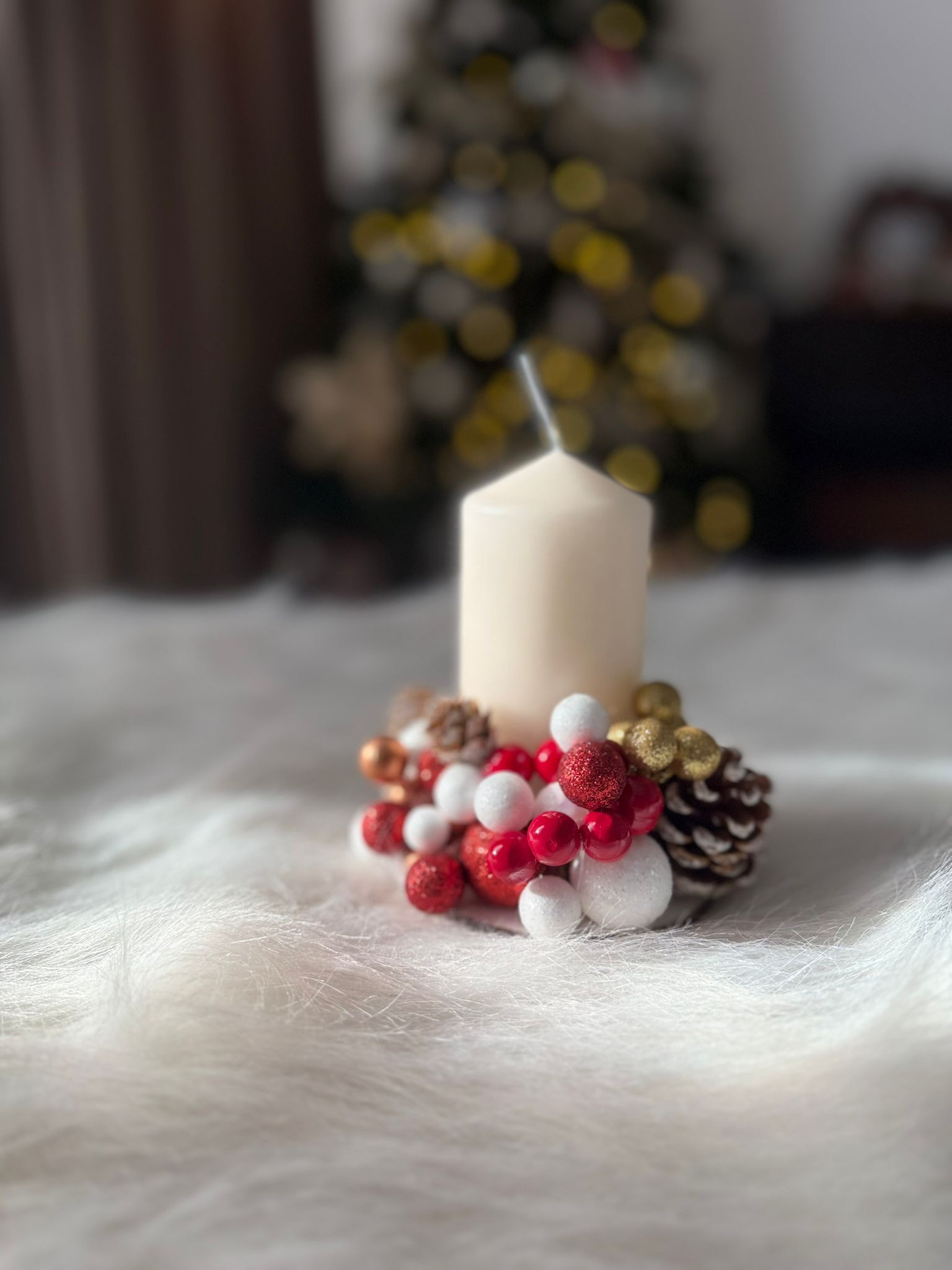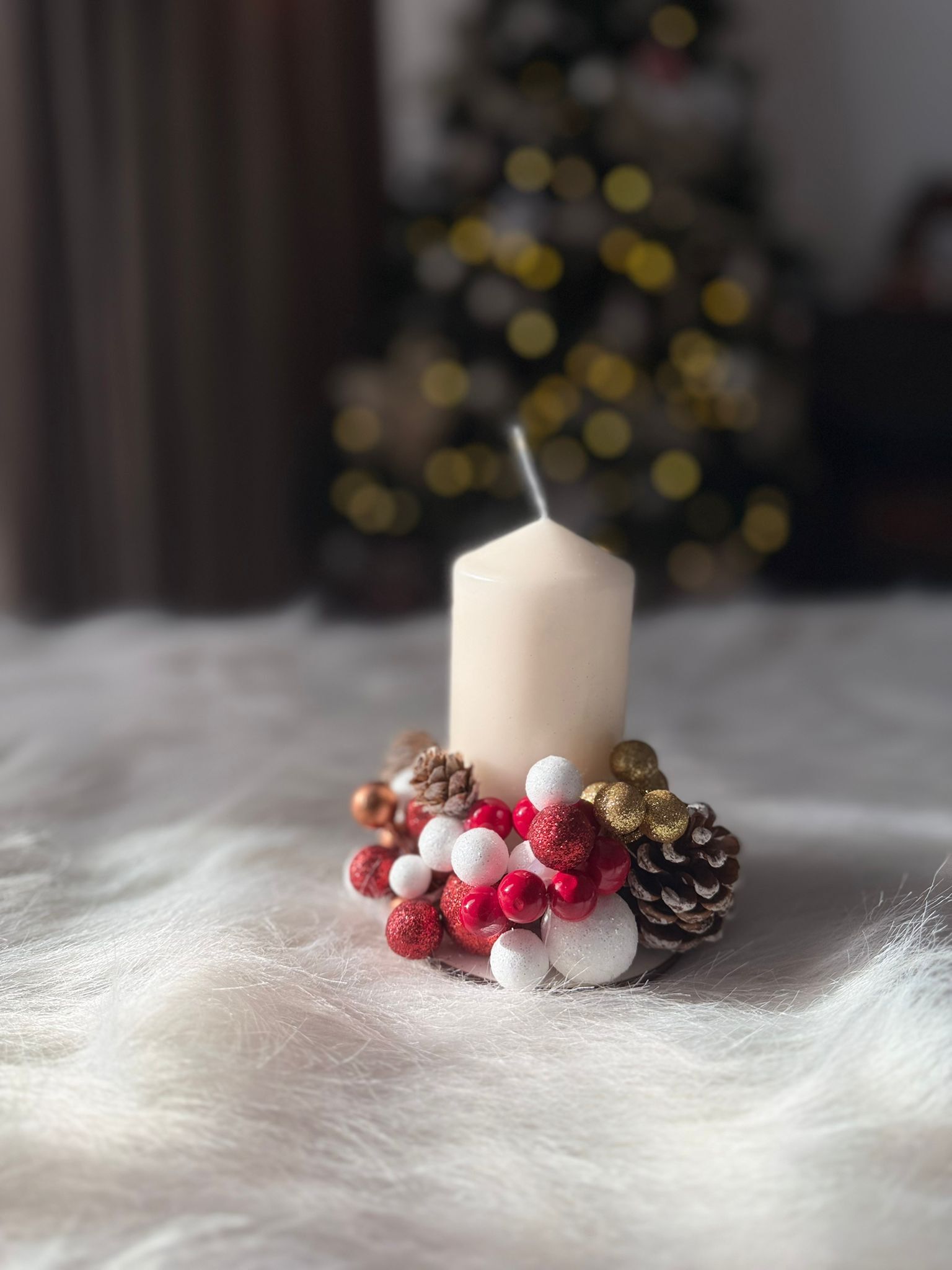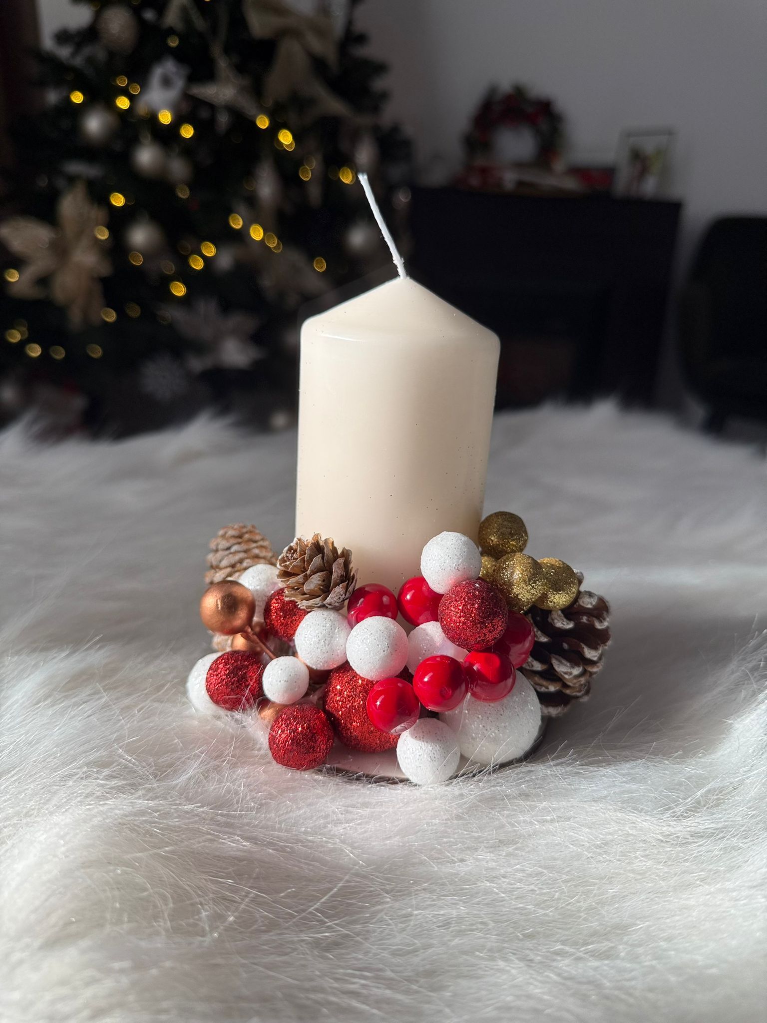 Lumanarea decorativă de Crăciun adaugă un strop de magie festivă oricărei încăperi. Cu un design elegant și detalii atent lucrate, această lumanare este ideală pentru a completa decorul sărbătorilor de iarnă. Perfectă pentru a crea o atmosferă caldă și primitoare, ea poate fi folosită atât ca piesă centrală, cât și ca dar special pentru cei dragi. Durabilă și rafinată, va fi cu siguranță un element deosebit în pregătirile de Crăciun.