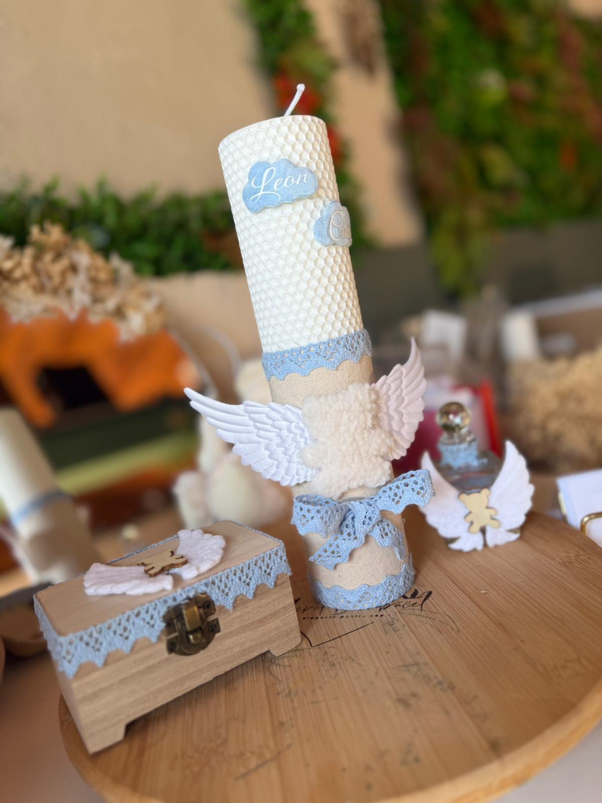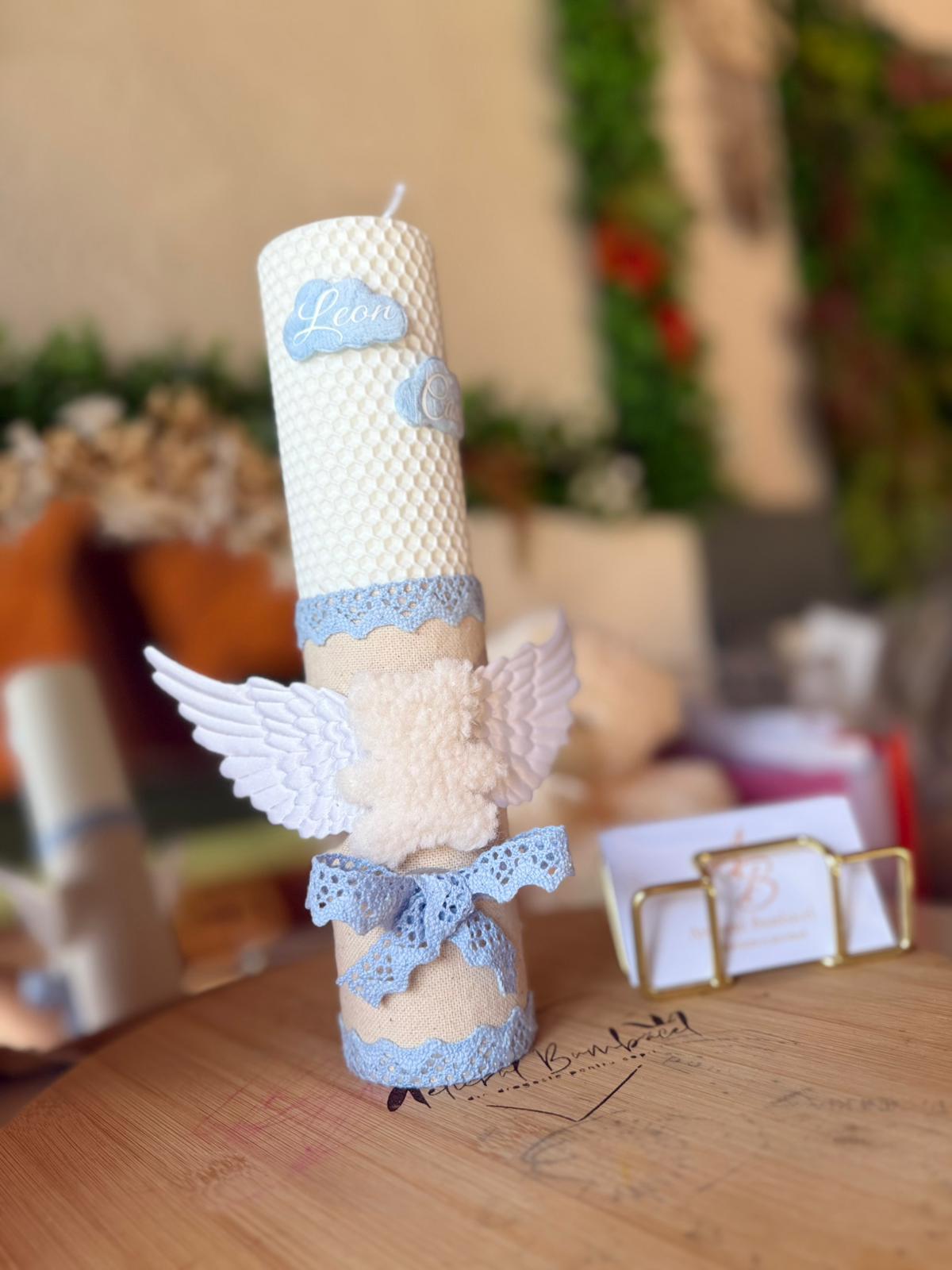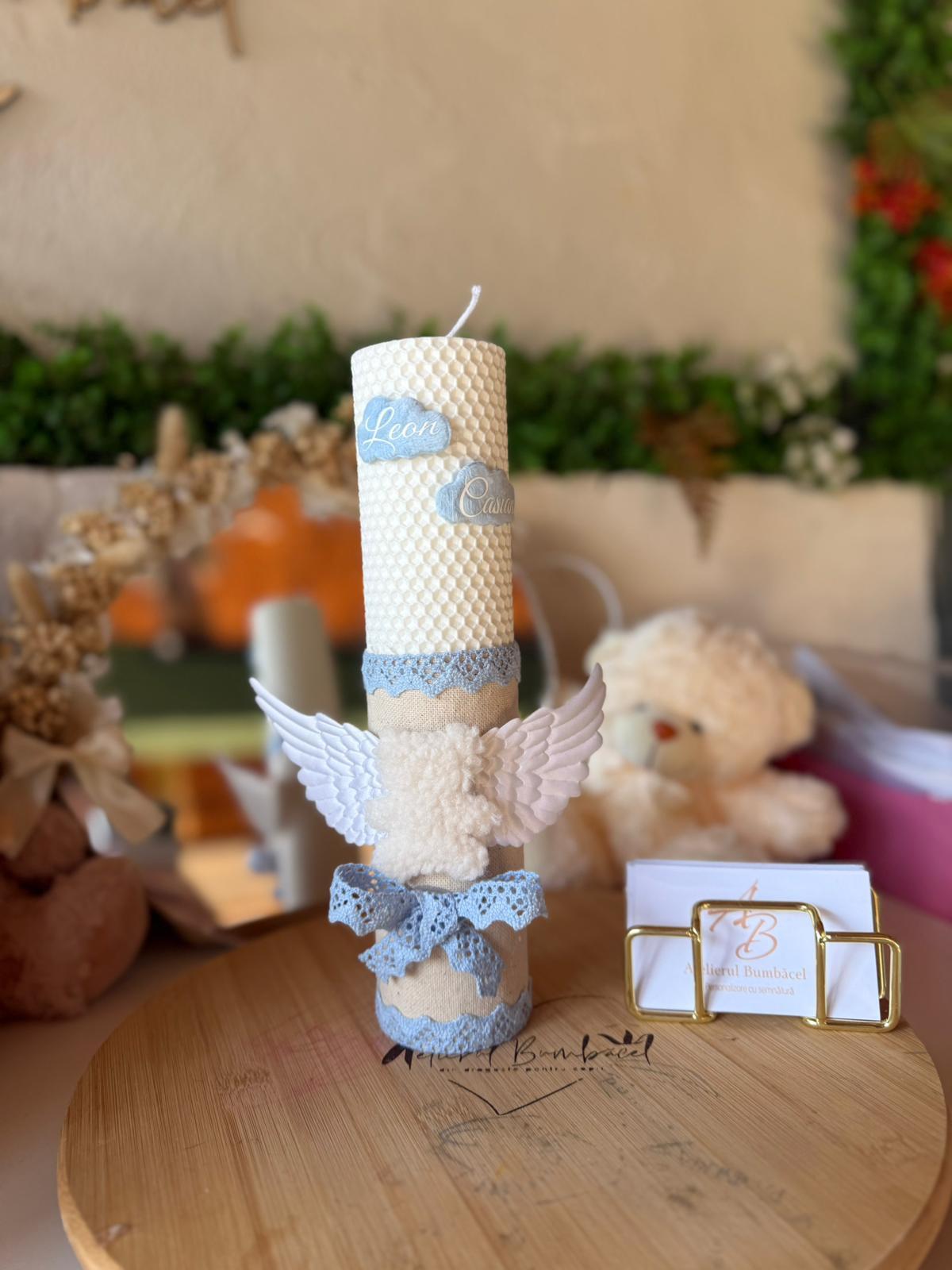 Lumânarea "Ursuleț cu aripi înger" este un simbol delicat al purității și iubirii. Realizată cu grijă din materiale de calitate, această lumânare aduce un strop de magie și căldură în orice decor. Designul său unic, în formă de ursuleț cu aripi, o face ideală pentru evenimente speciale sau momente de reflecție. Este un cadou deosebit, perfect pentru a crea amintiri pline de emoție. Norisorii se pot personaliza cu numele copilului.Lumânarea are dimensiunea de 26 cm.