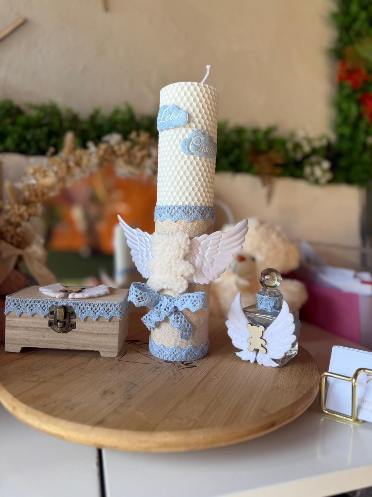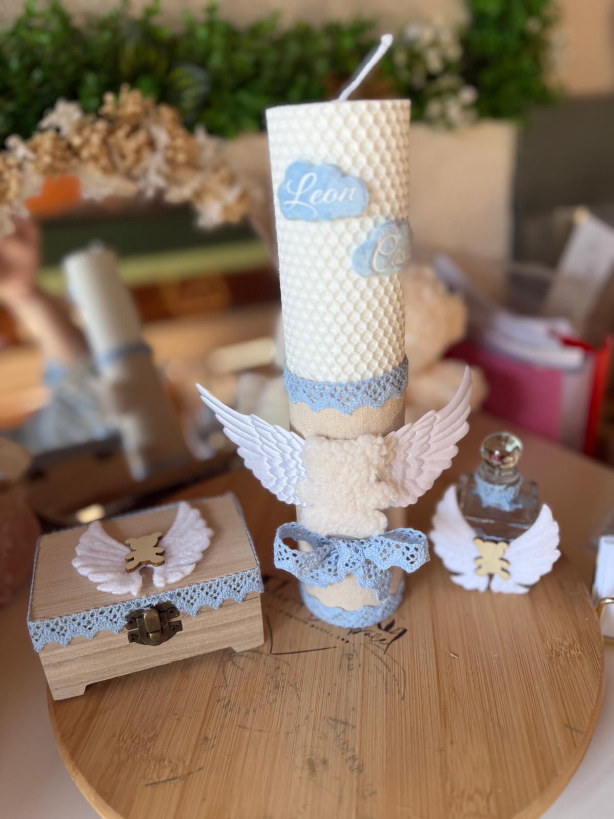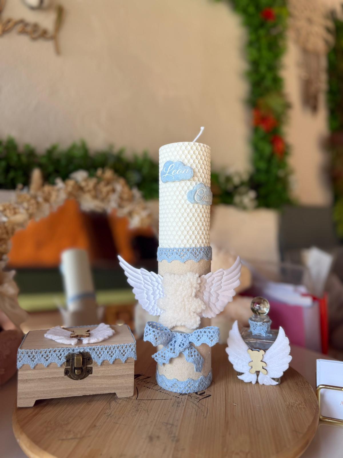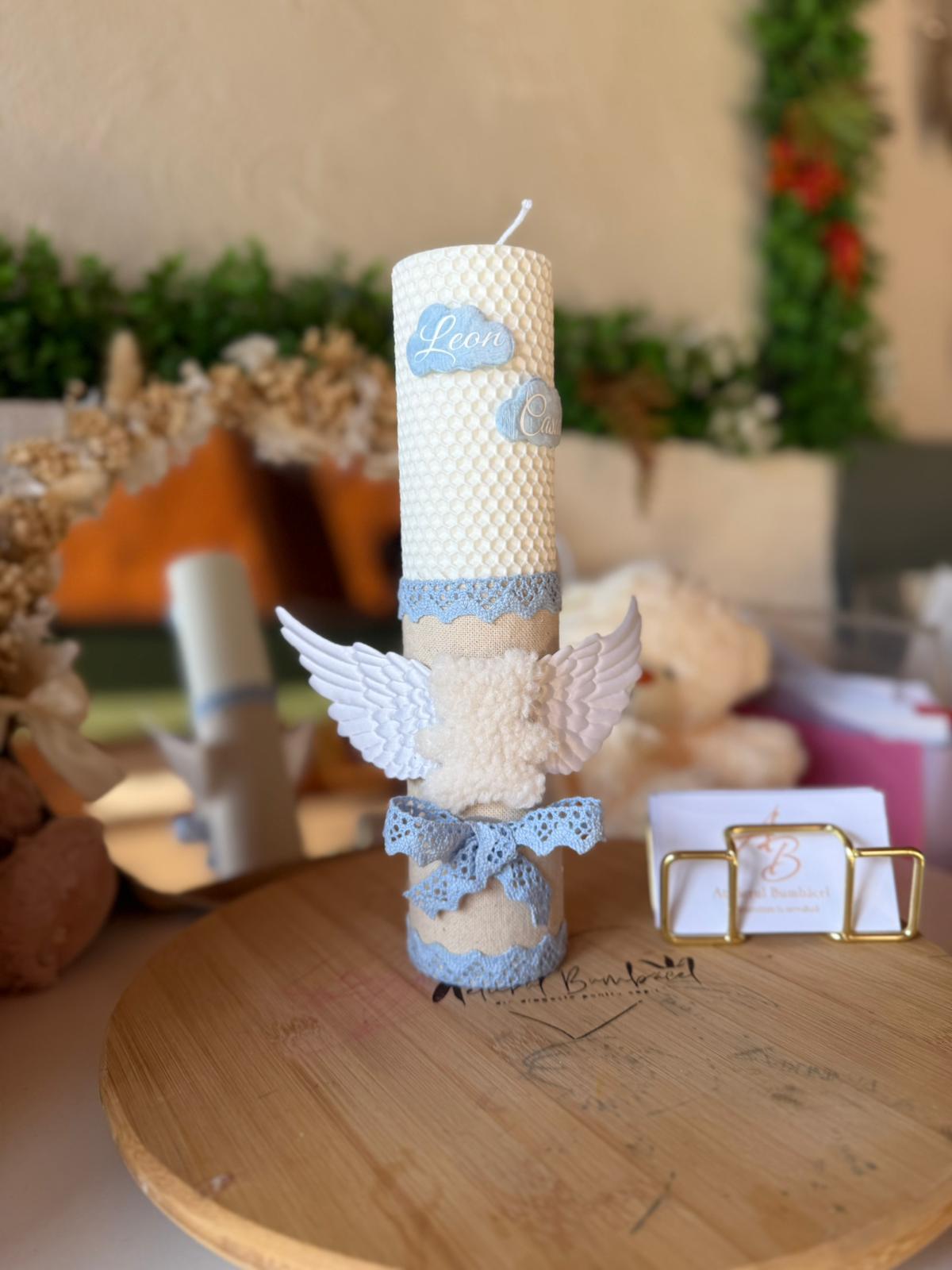 Lumânarea "Ursuleț cu aripi înger" este un simbol delicat al purității și iubirii. Realizată cu grijă din materiale de calitate, această lumânare aduce un strop de magie și căldură în orice decor. Designul său unic, în formă de ursuleț cu aripi, o face ideală pentru evenimente speciale sau momente de reflecție. Este un cadou deosebit, perfect pentru a crea amintiri pline de emoție. Norisorii se pot personaliza cu numele copilului.Lumânarea are dimensiunea de 26 cm.