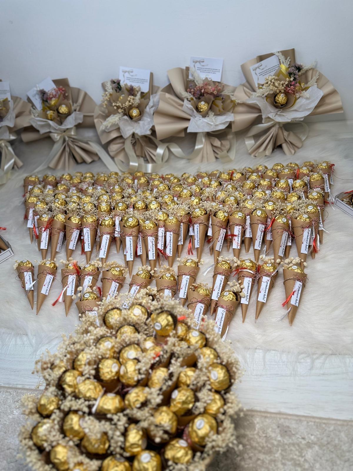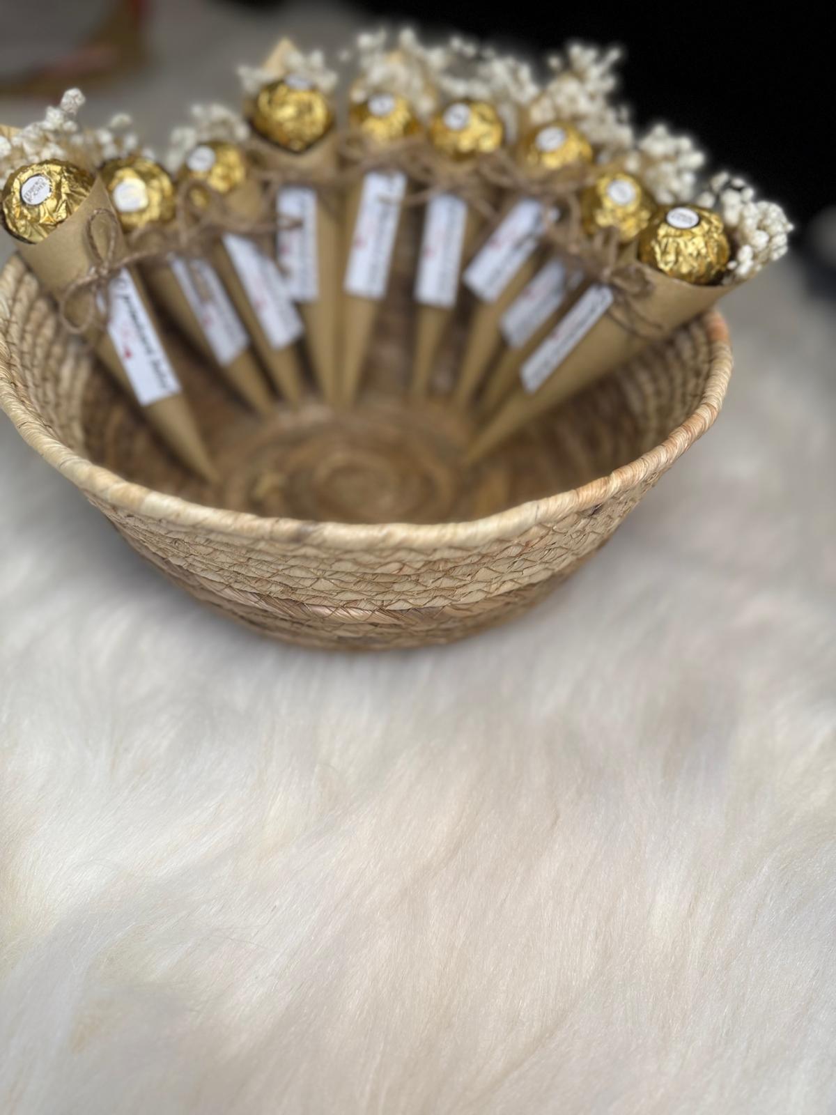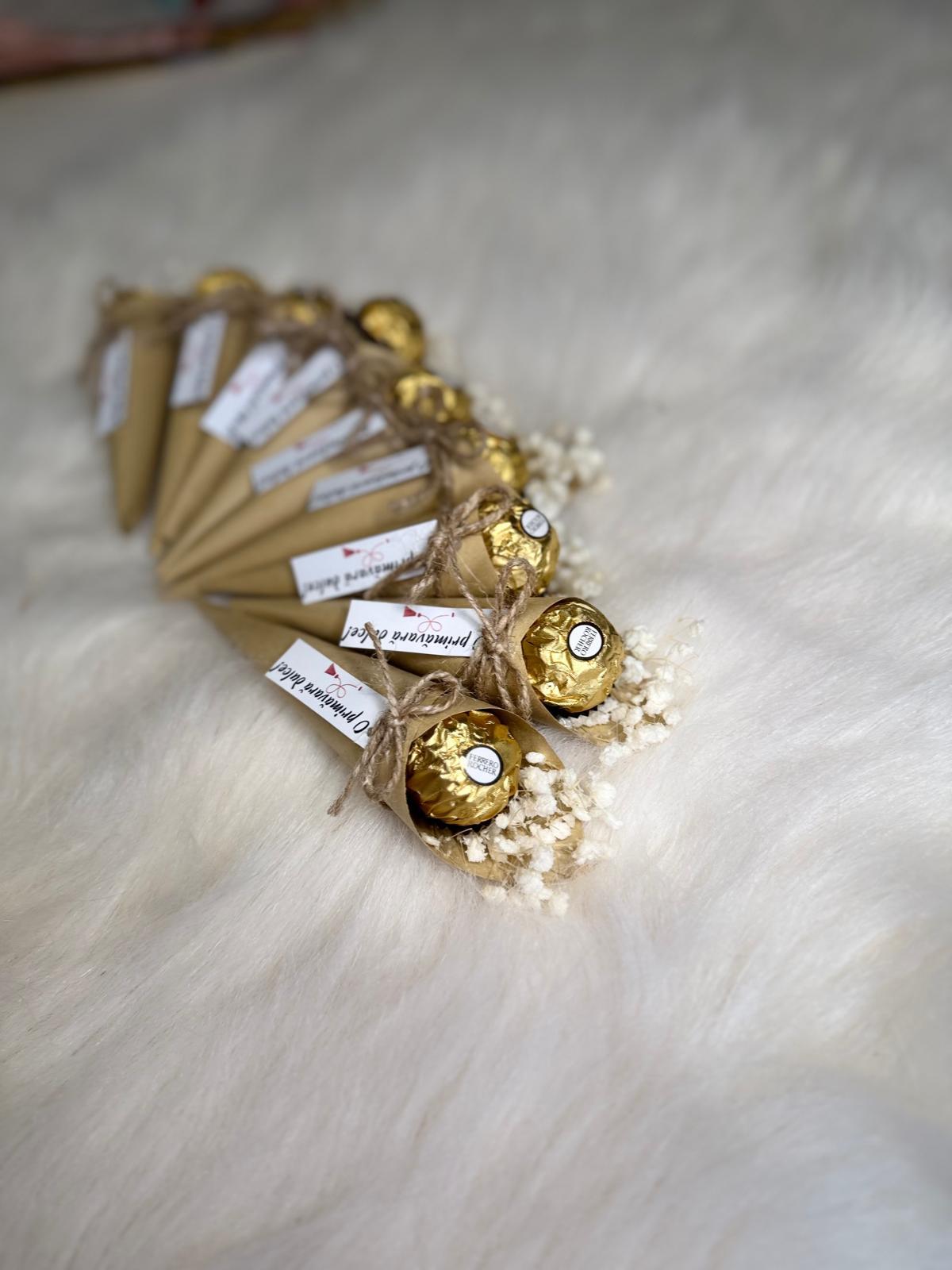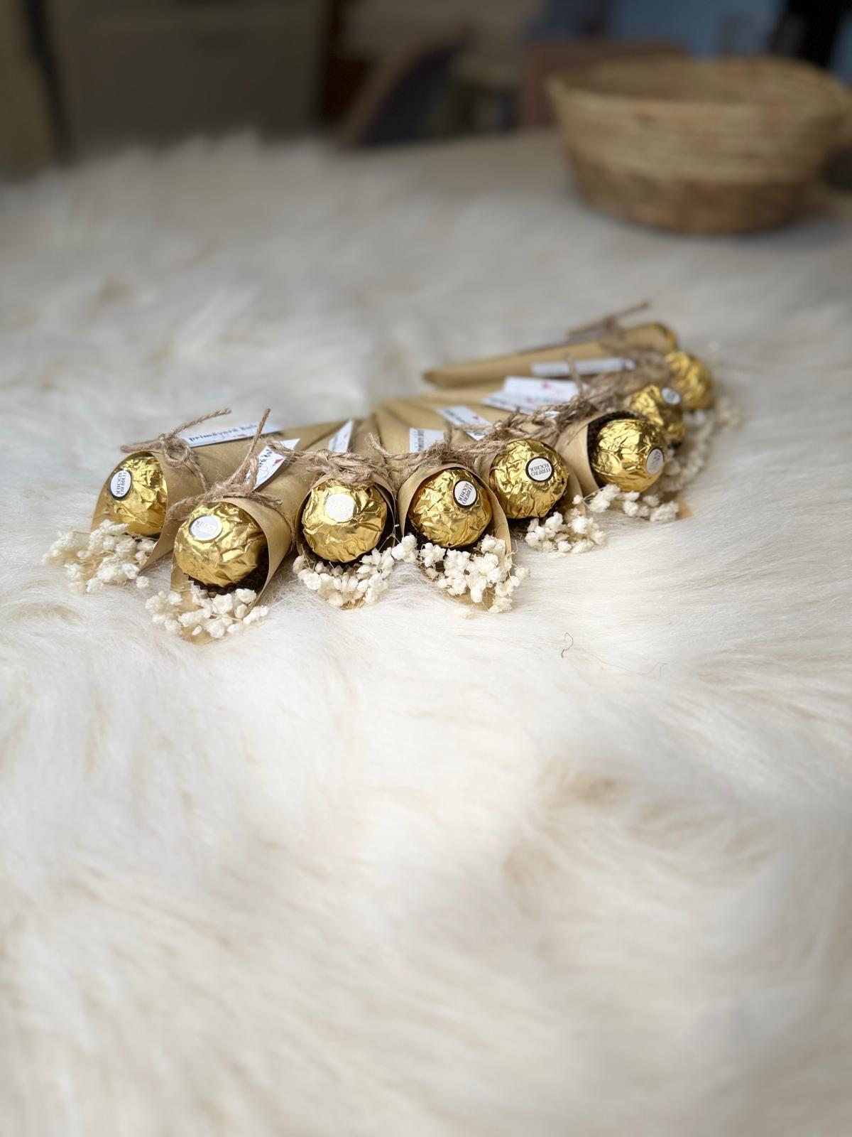 Martisorul cornet Ferrero este mărțisorul perfect diferit pentru a sărbători începutul primăverii. Acest produs delicat combină eleganța tradiționalului șnur de mărțișor,cornet din hârtie craft ,floricele albe cu savoarea inconfundabilă a ciocolatei fine Ferrero. Fiecare bucată oferă o explozie de gust rafinat, fiind ambalată cu grijă pentru a aduce bucurie celor dragi. Alege mărțișor pentru un gest plin de rafinament și simbolistică.