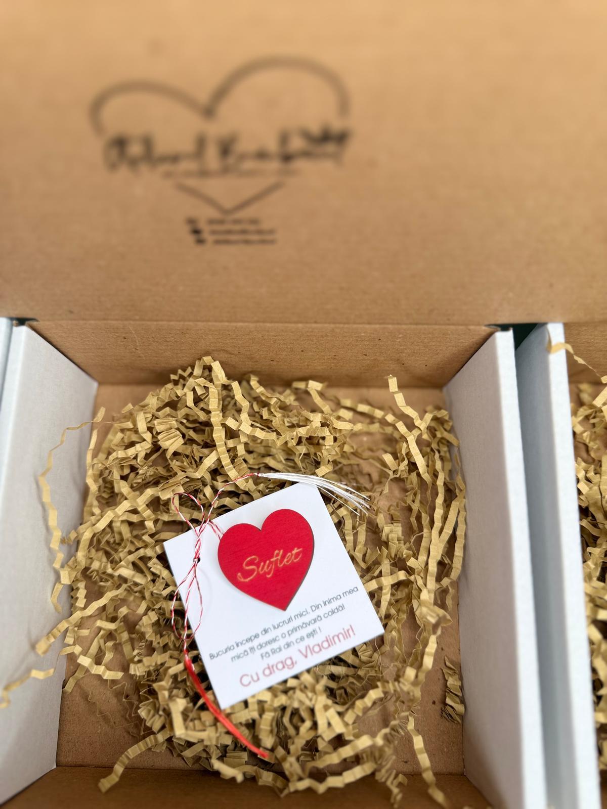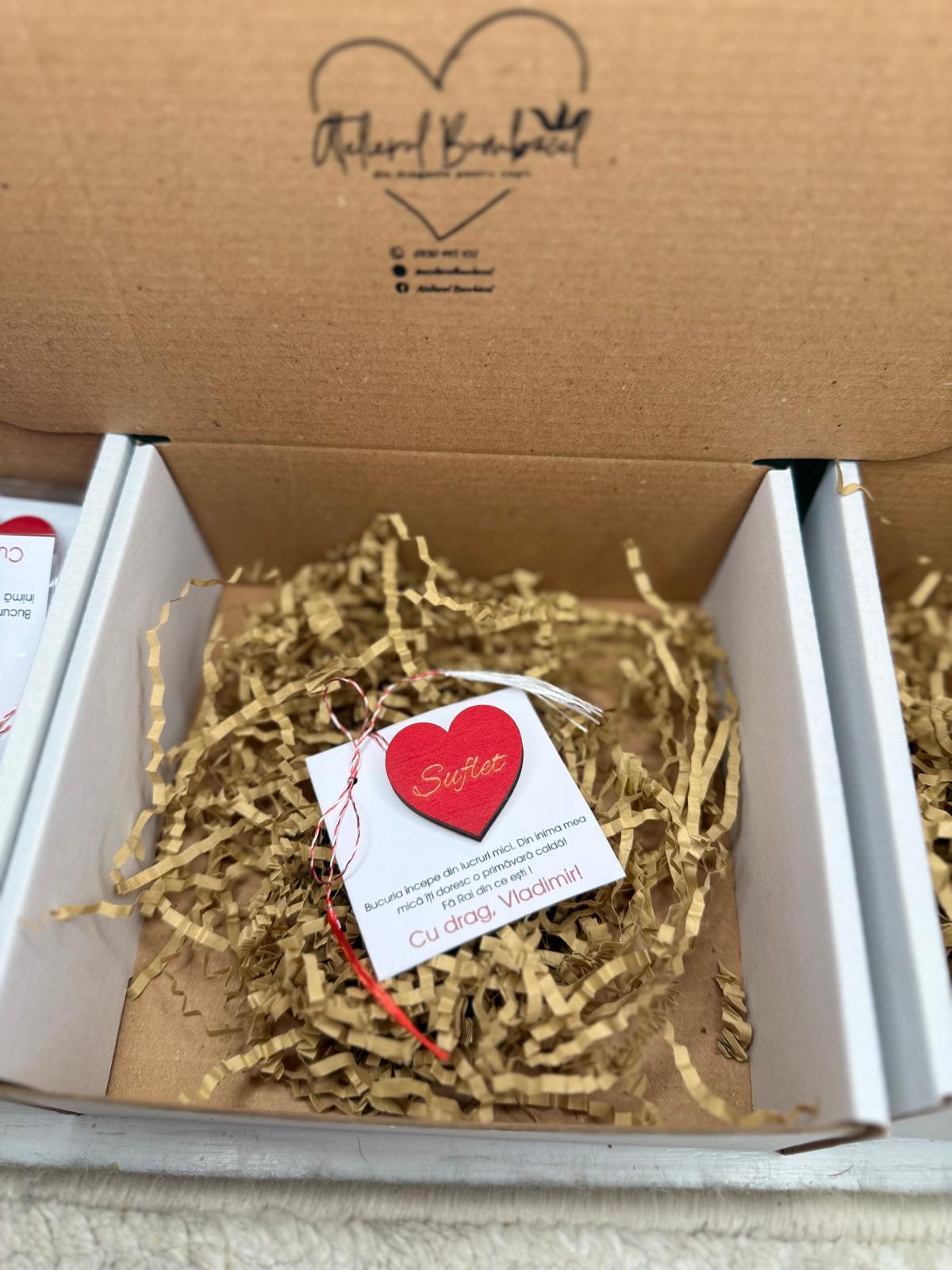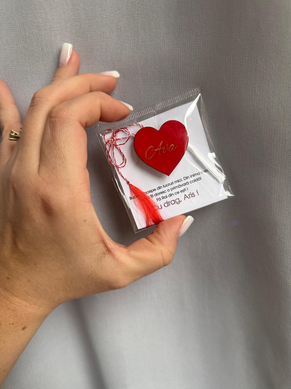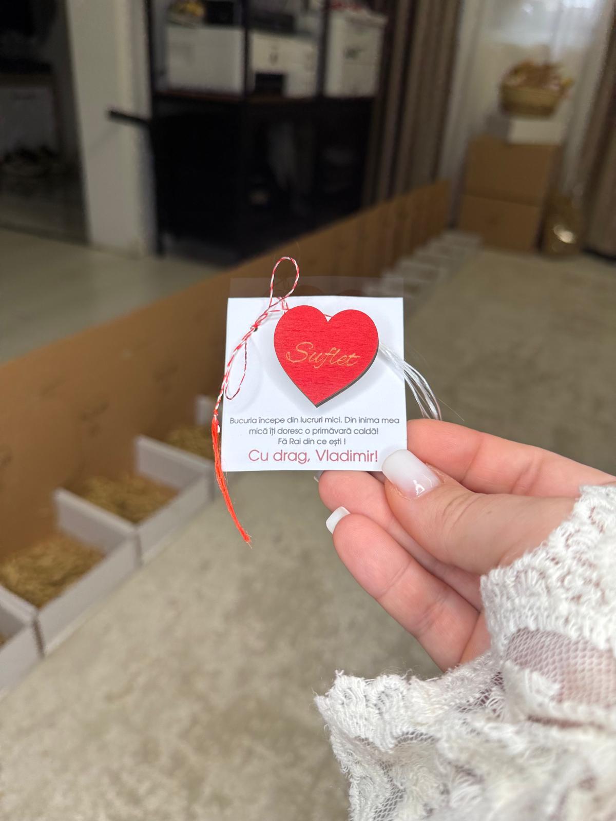 Alte specificații : Mărțișorul este in totalitate personalizabil , de la textul de pe cartonaș până la inimioară. Mărțișoarele se realizează pe comandă în limita timpului disponibil . Dimensiunea inimioarei este de 3,5 cm lățime cu aproximativ 3,5 cm înălțime.Termenul de executie poate să dureze până la 2 săptămâni in perioada mărțișorului.De asemenea de rezervăm dreptul de a refuza comenzile ce nu vor putea fi onorate in timp util , aceste aspecte fiind comunicate la contactarea telefonică a clientului pentru confirmarea comenzii.