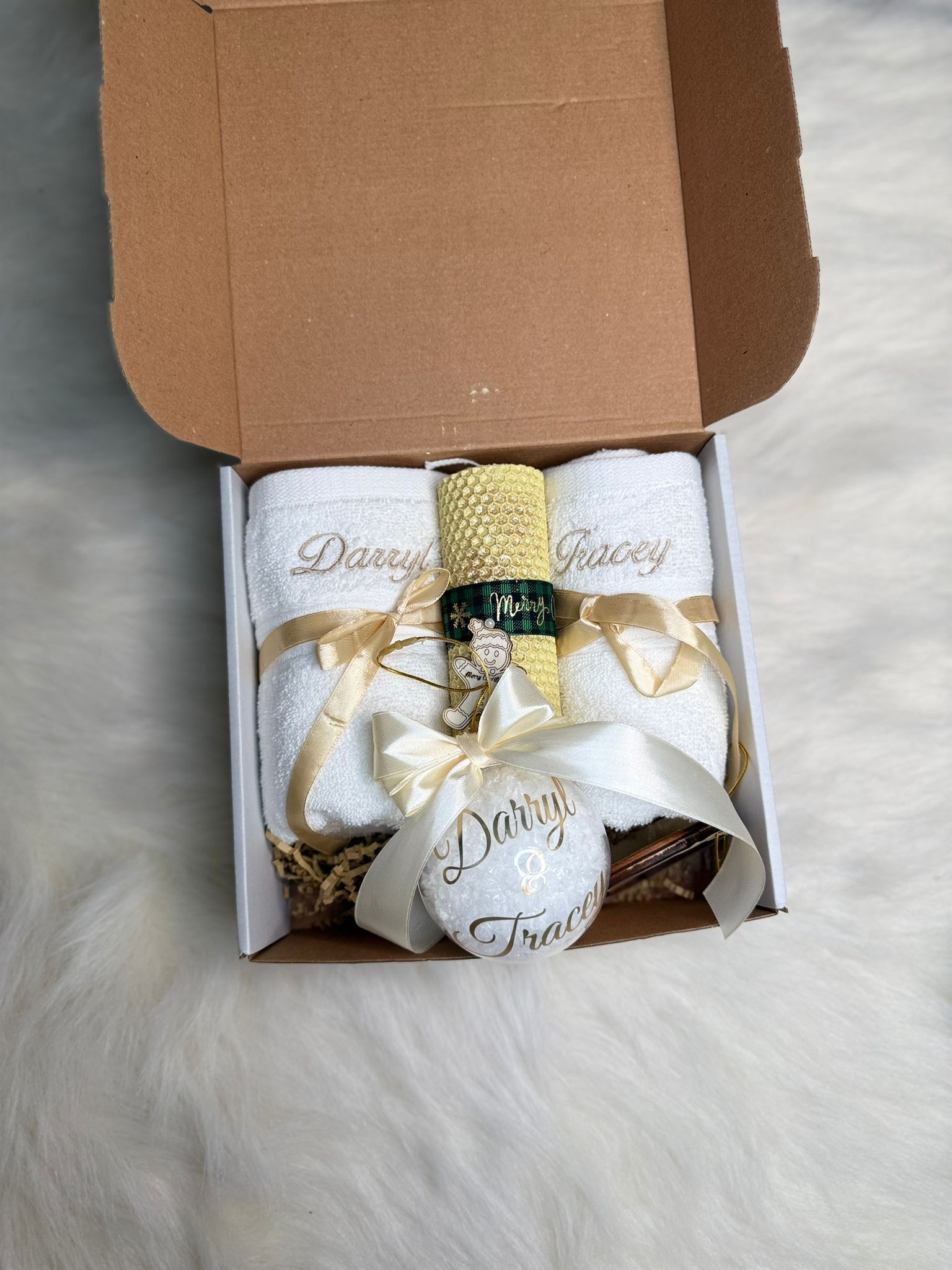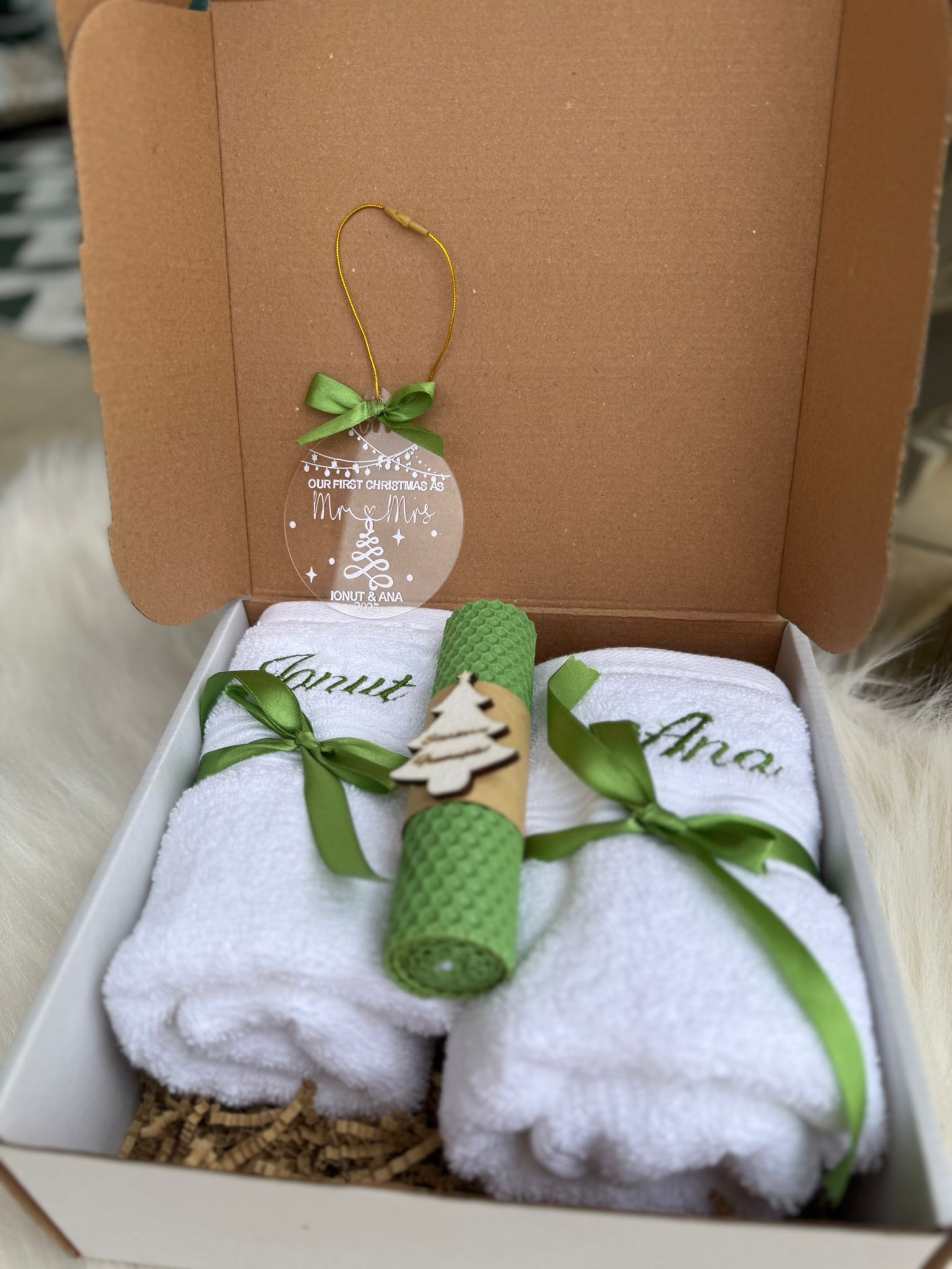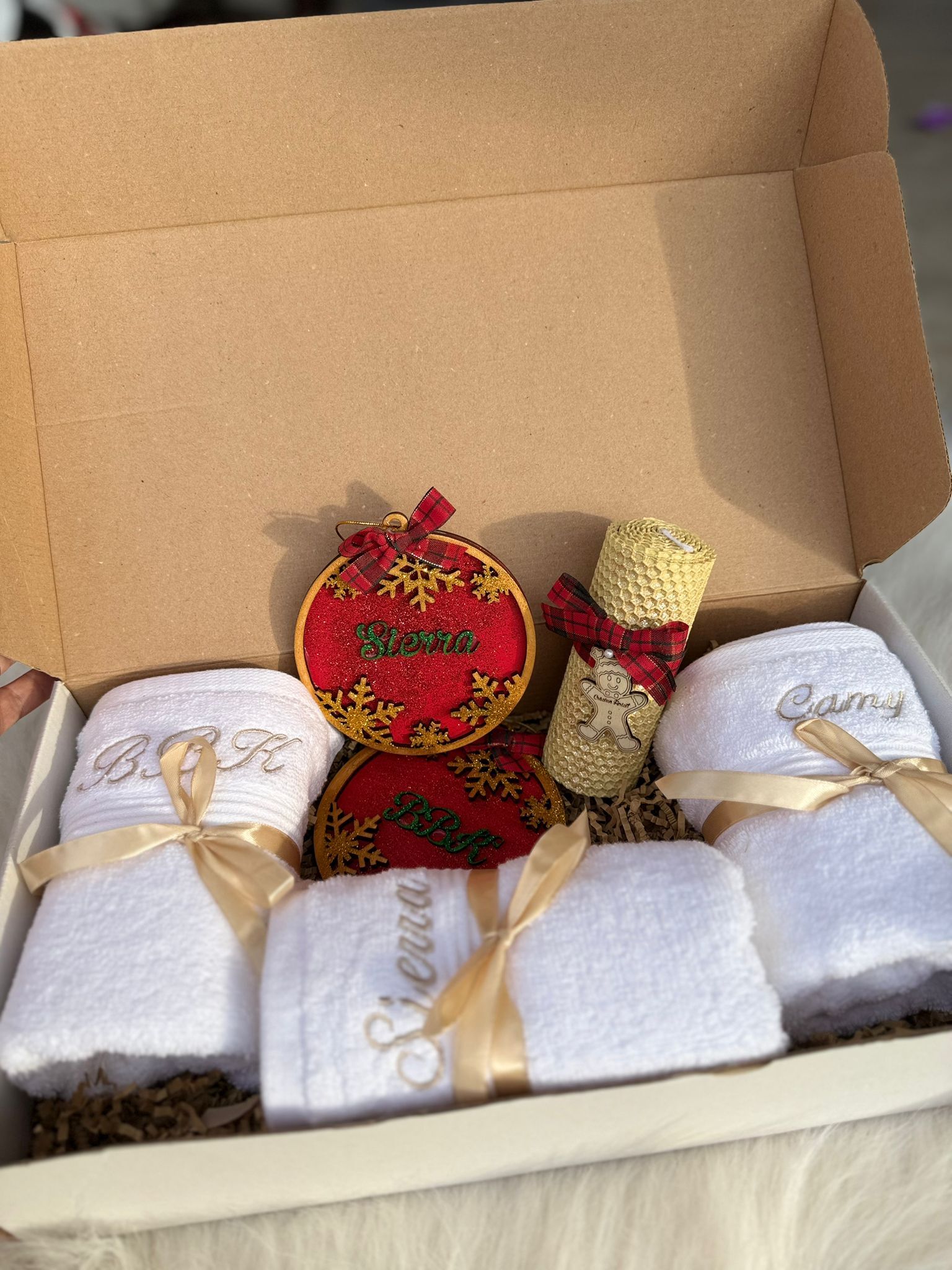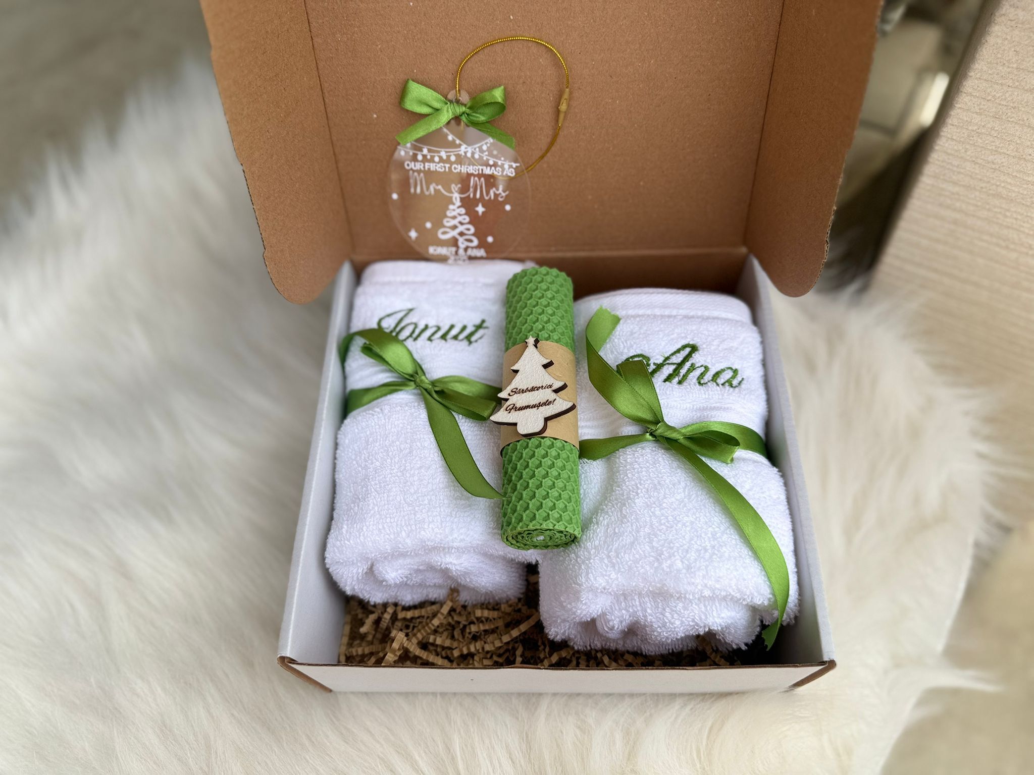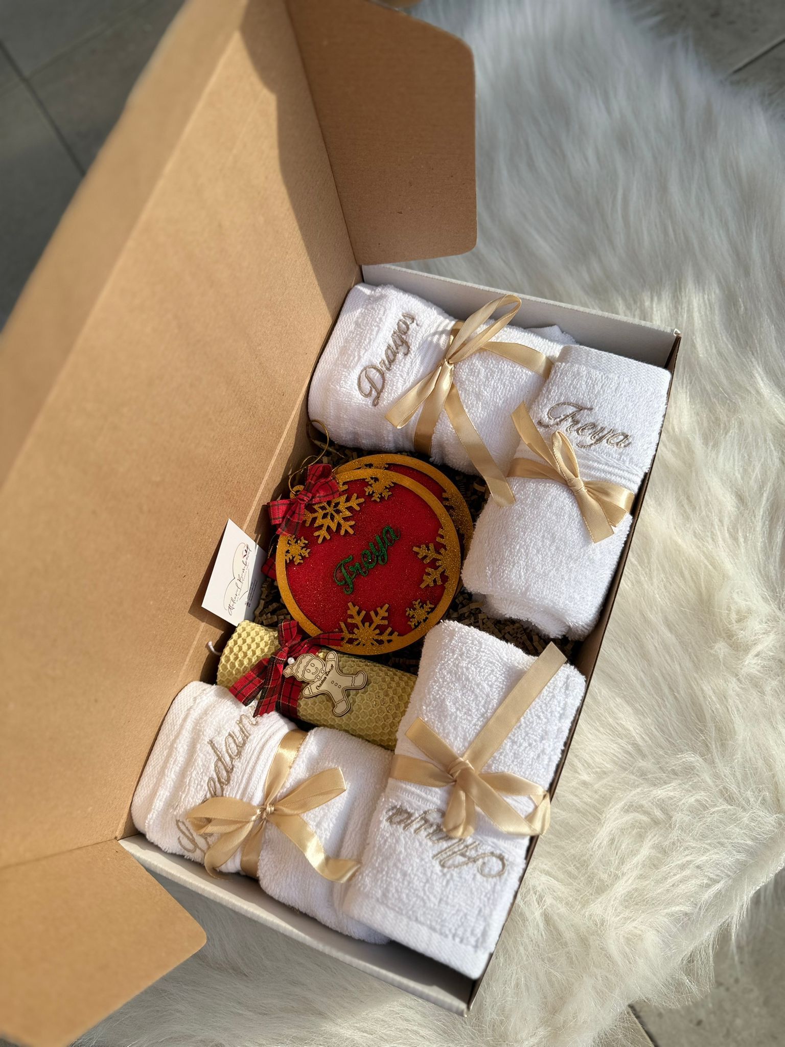 Set cadou de Craciun prosop,lumanari glob/ingeras personalizat