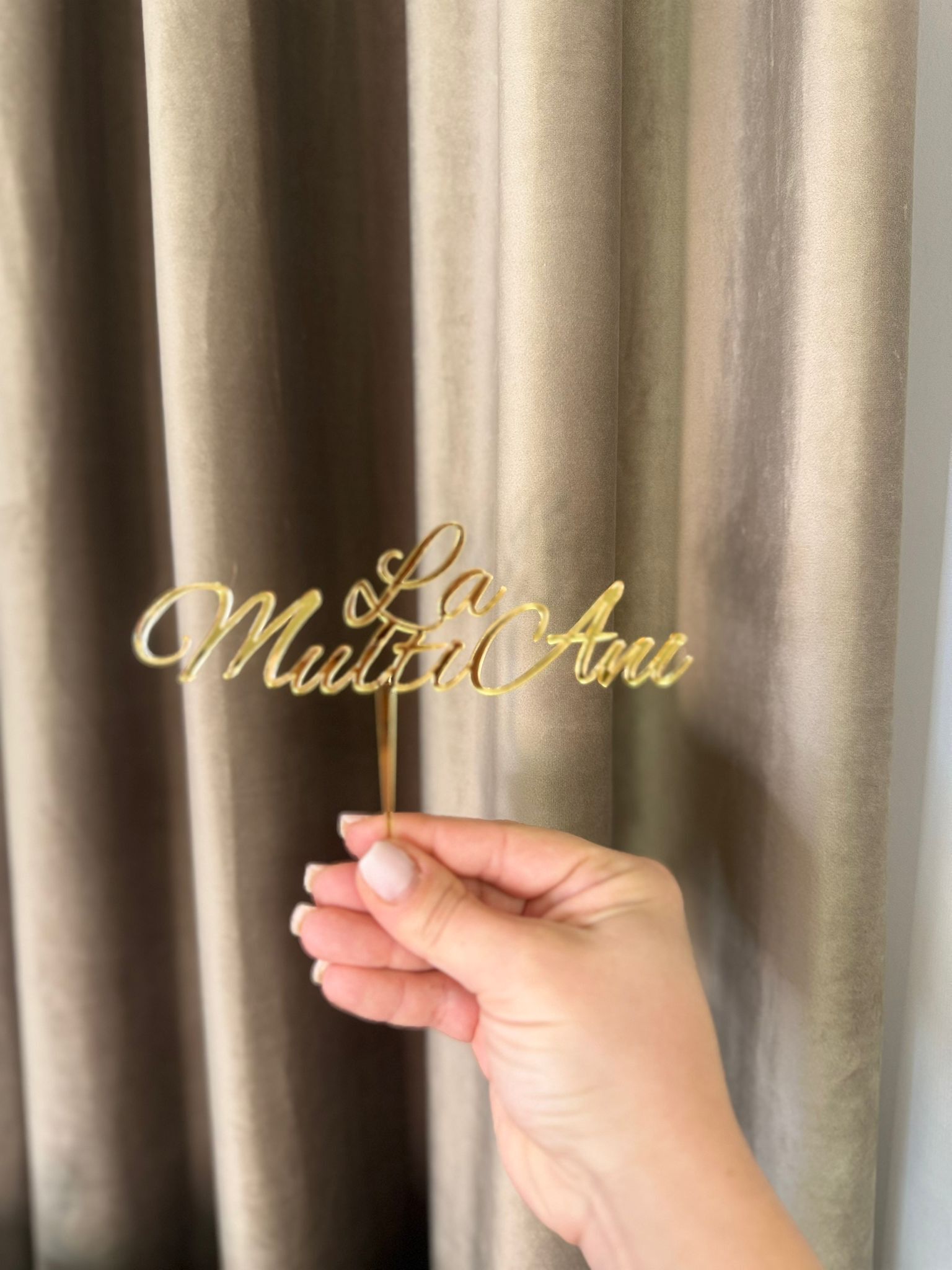 Alte specificații : Produsul de poate realiza cu tijă sau fără. Dimensiune text 16x5 cm. Înălțime totală cu tijă 11 cm .