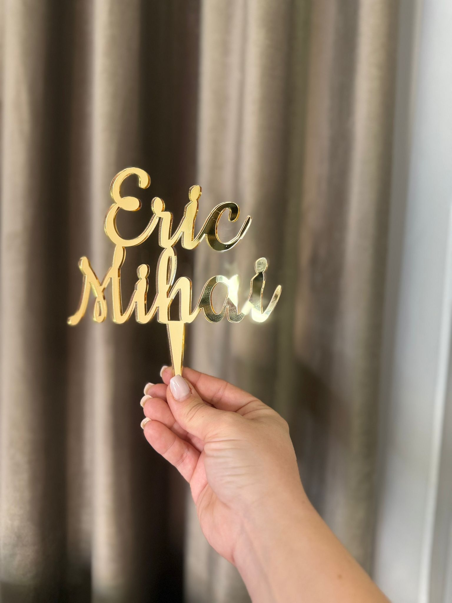 Alte specificații : Produsul se poate realiza cu sau fără tijă. Dimensiunea variază in funcție de numărul de caractere.Produsul prezentat in imagine are 17 cm lungime si 13 cm înălțime, fără tijă . Înălțimea totală cu tija este de 18 cm.