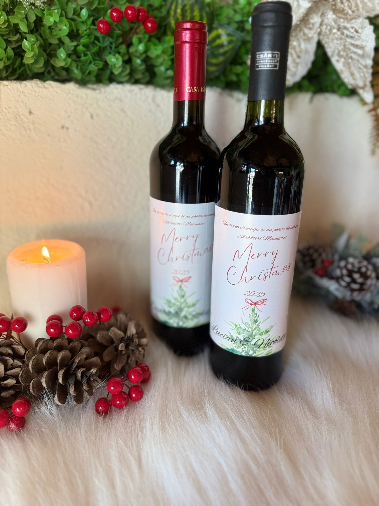 Transformă o sticlă de vin într-un cadou unic și special cu ajutorul etichetei personalizate. Poți adăuga un mesaj, un nume sau o dată specială, creând un produs perfect pentru aniversări, nunți sau orice alt moment special. Calitatea vinului, combinată cu designul personalizat, va impresiona cu siguranță pe oricine îl primește. Alege această opțiune elegantă pentru a aduce o notă personală unui dar de neuitat.Tipul vinului pe care il personalizam este Caii de la Letea insa la cerere se poate personaliza si alt tip de vin sau alta sticla de bautura.Pretul etichetei personalizate este 20 de lei si iar designul poate fi ales in functie de preferinte .